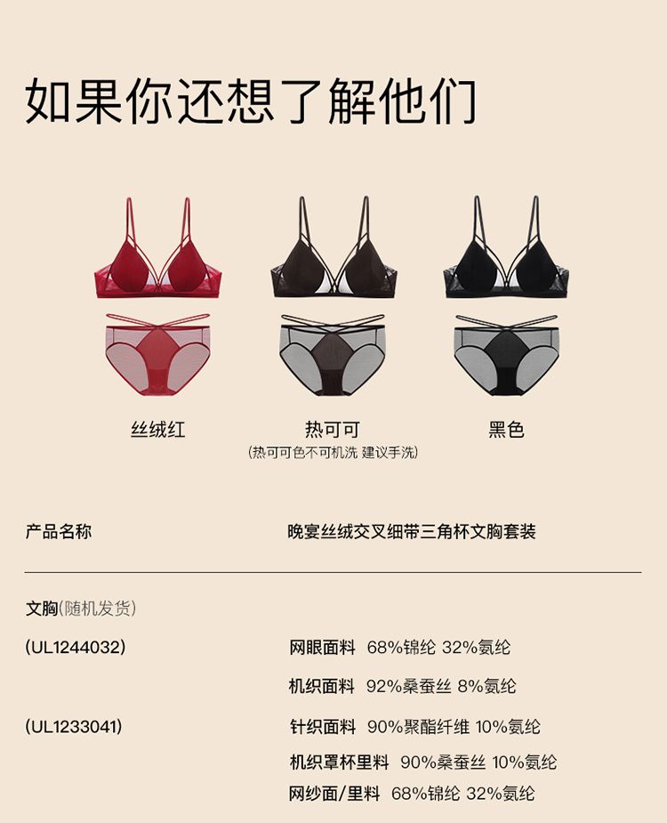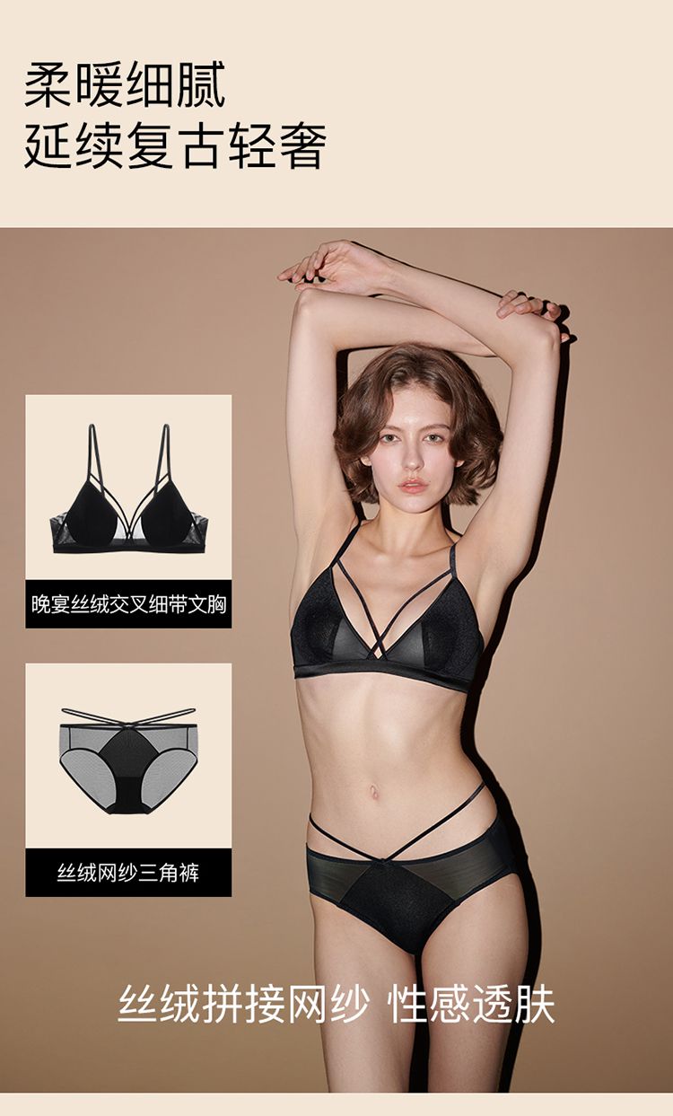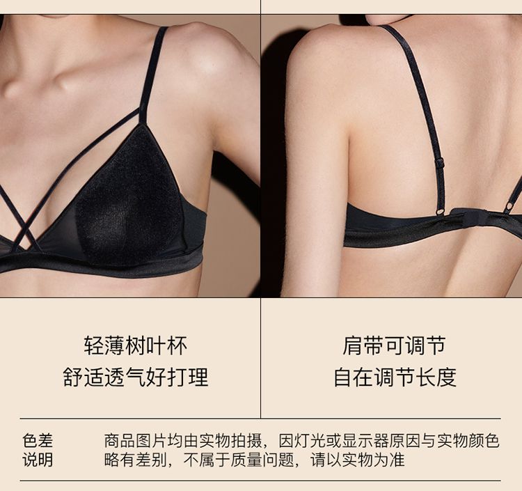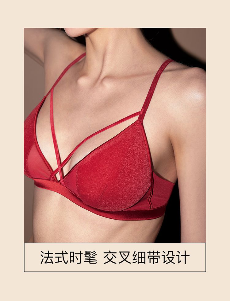 商品名称:【高级性感】丝绒交叉细带三角杯文胸无钢圈女士内衣 450816