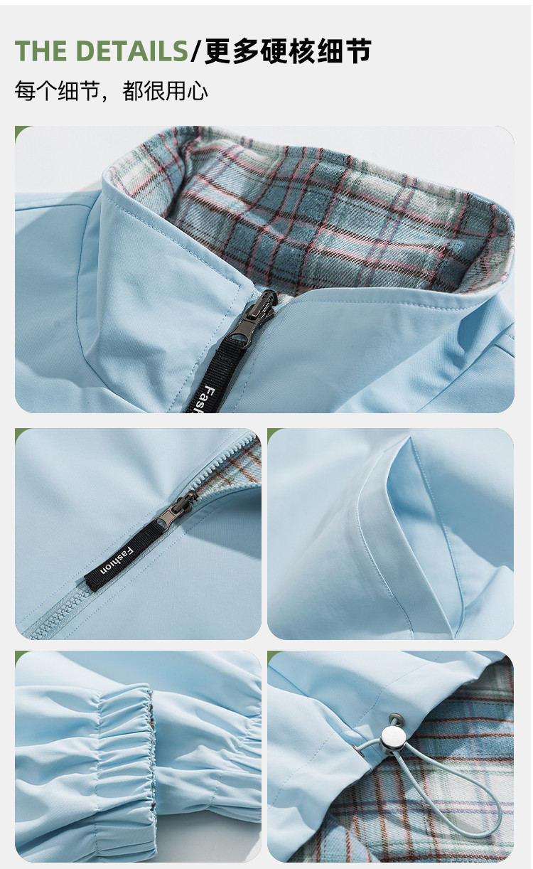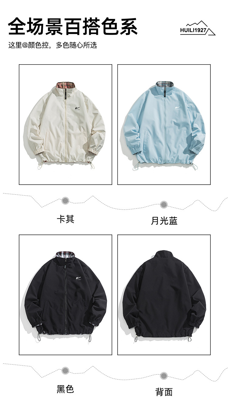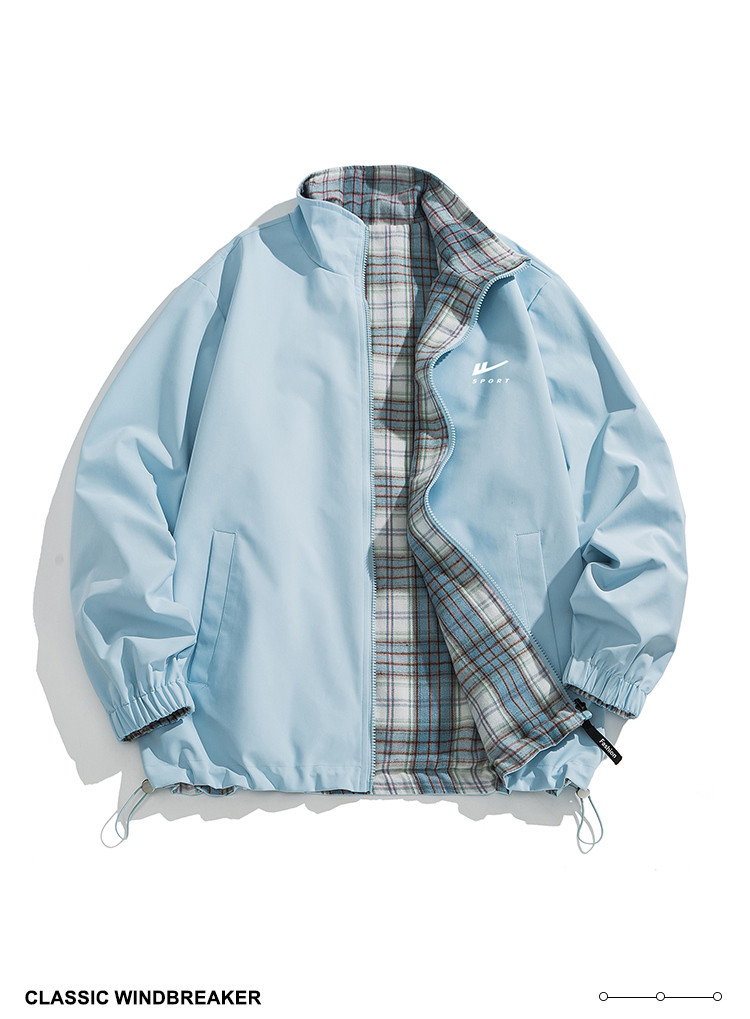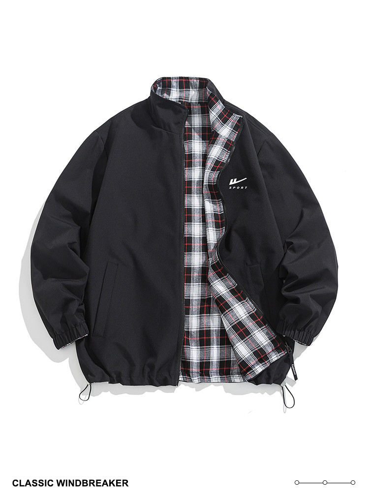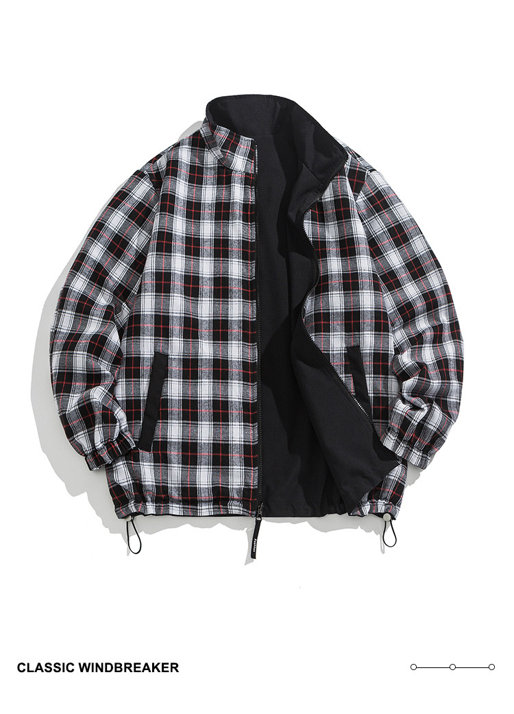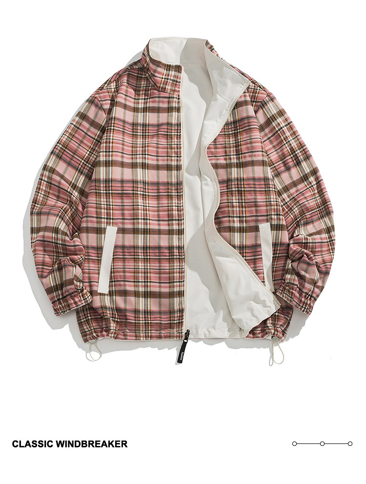 商品名称:【双面穿】复古格子外套男女青少年休闲日系翻领帅气情侣宽松夹克 734547