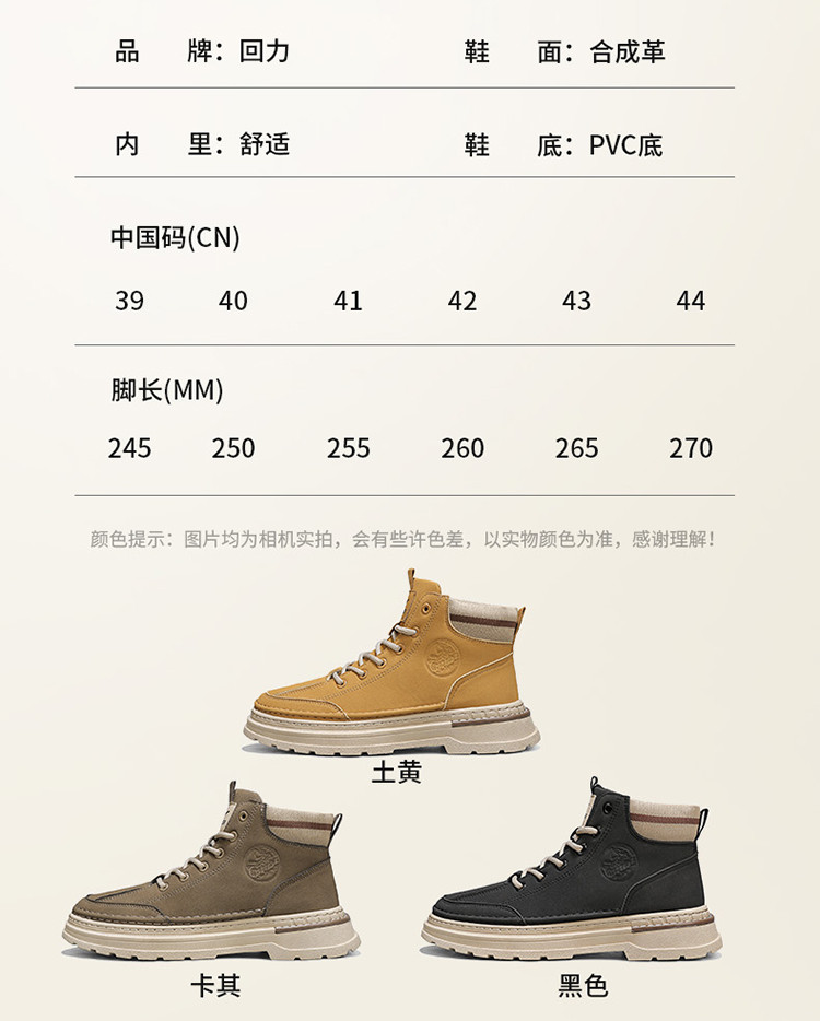 商品名称:【2025春季】舒适男鞋厚底耐穿马丁靴男百搭运动休闲靴男靴子 627476