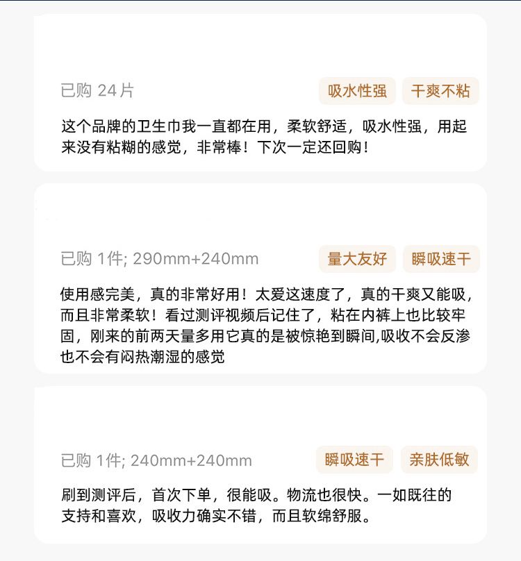 日用240mm*8片+日用/夜用290mm*6片+超长夜用360mm*5片
