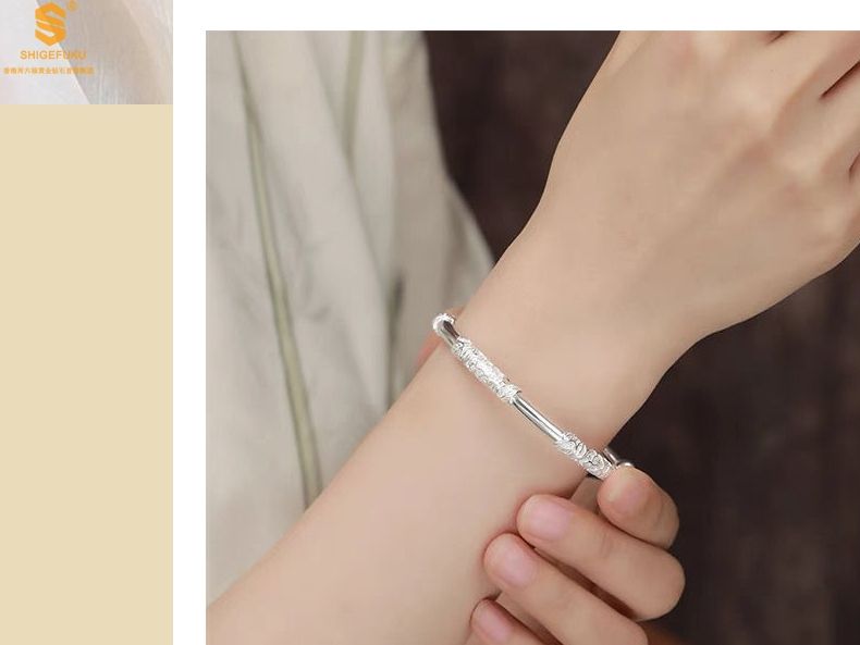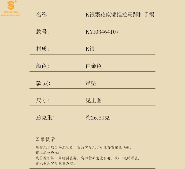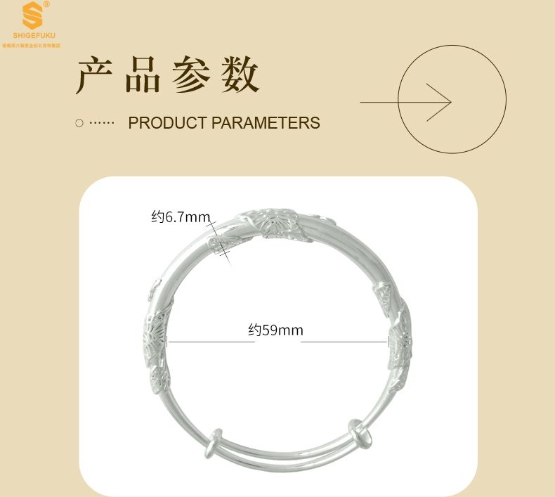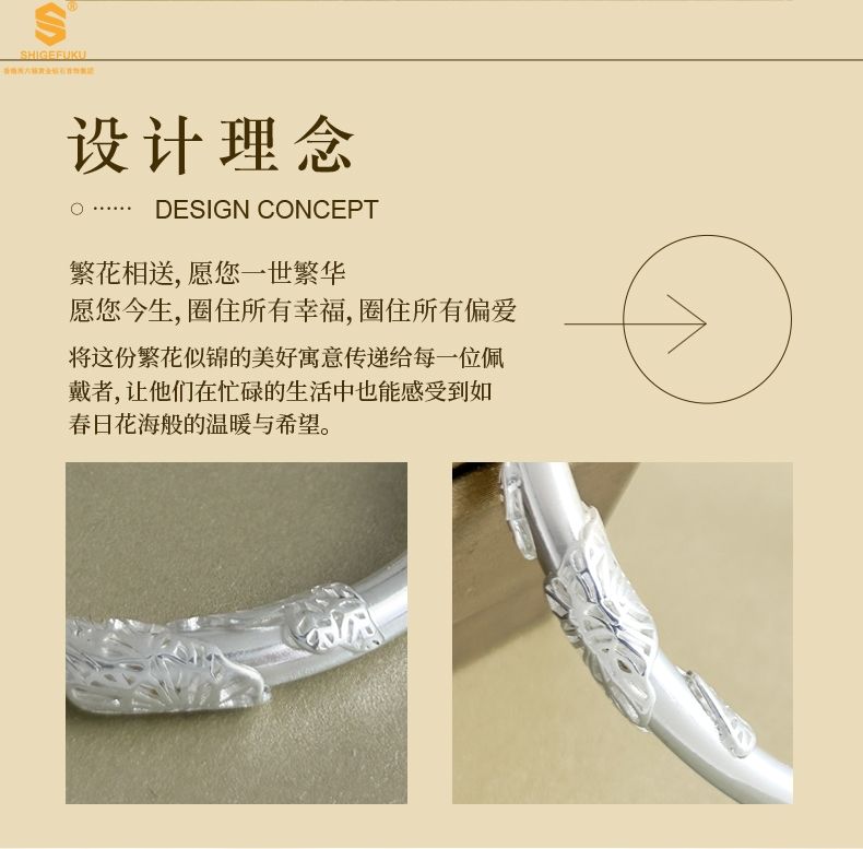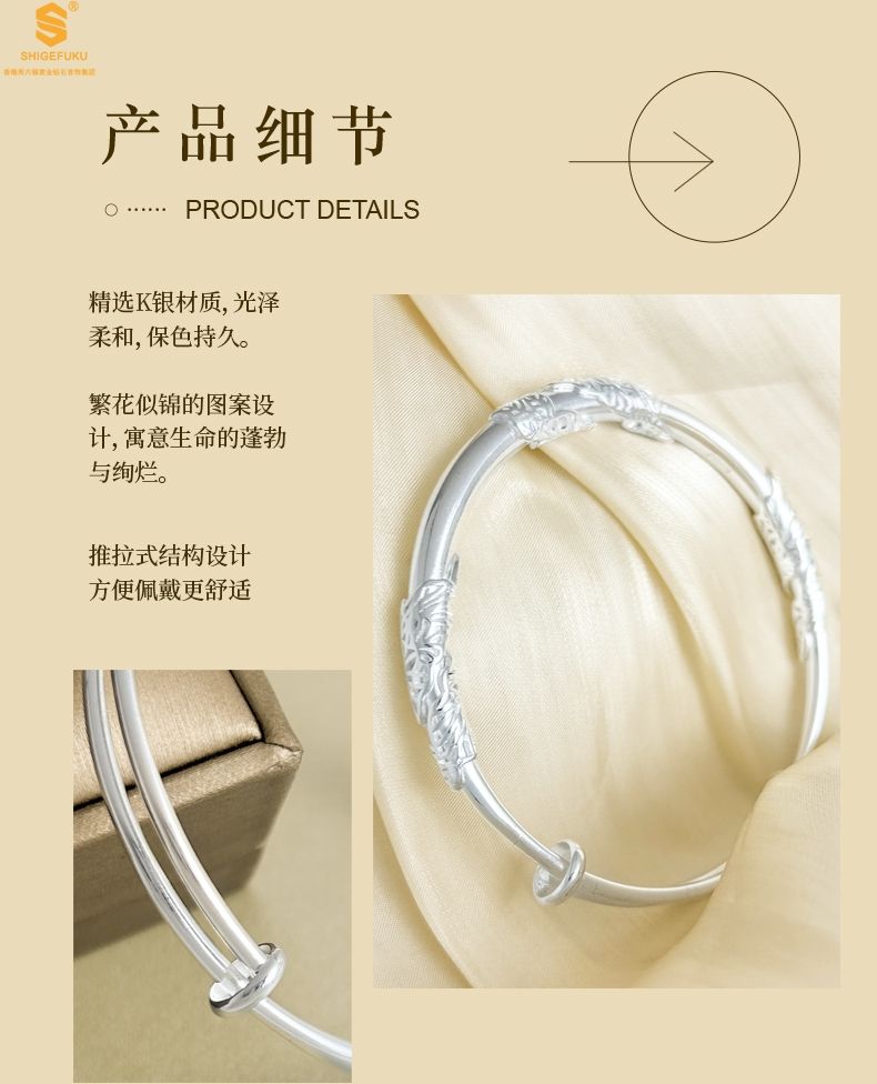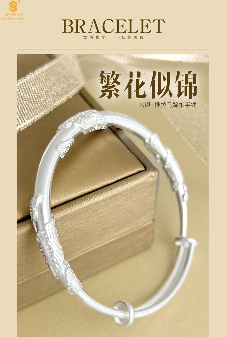 商品名称:香港周六福黄金钻石首饰K银繁花似锦推拉马蹄扣手镯