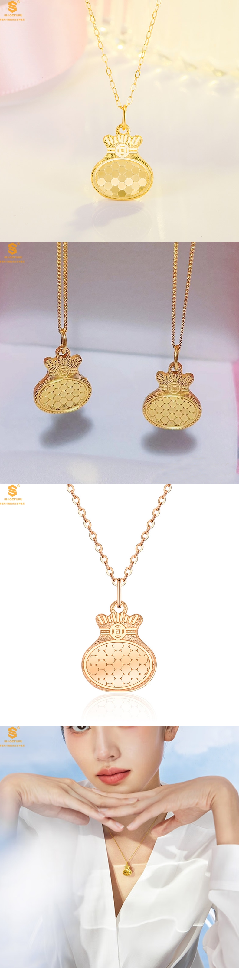 香港周六福黄金钻石首饰K金龙鳞闪耀聚财福禄吊坠