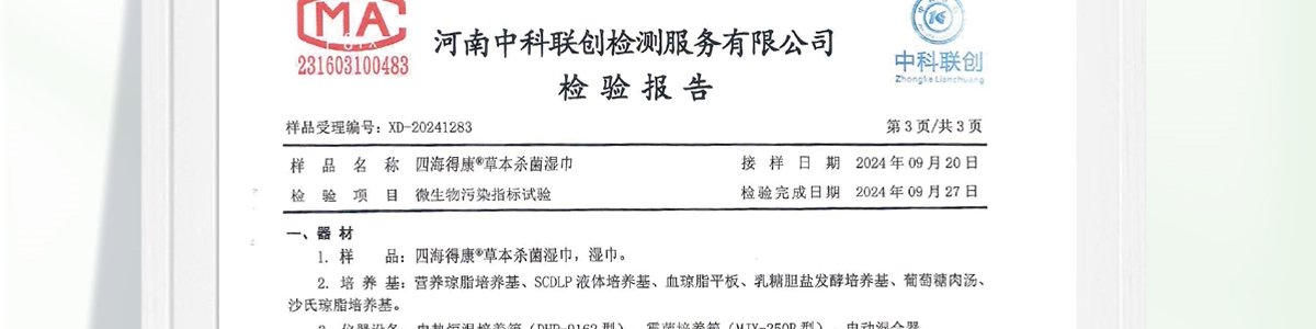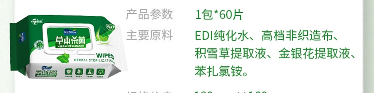 商品名称:四海得康 草本杀菌湿巾 60抽*5包
