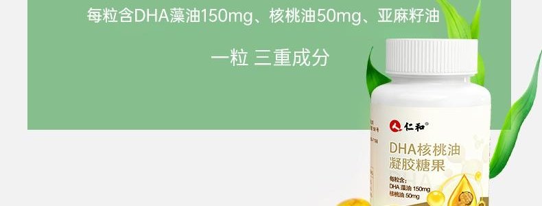 商品名称:(包装随机)仁和 DHA核桃油凝胶糖果 60粒