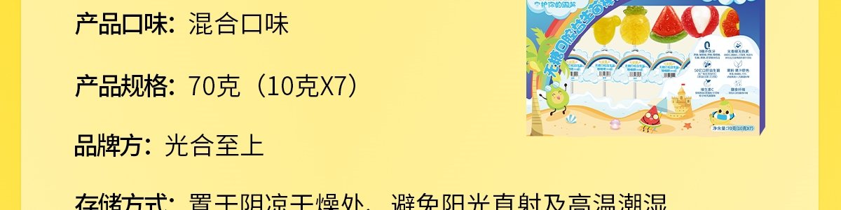 商品名称:光合至上(snacksun) 无糖口腔益生菌棒棒糖(灭活型) 热带水果款 70g/盒