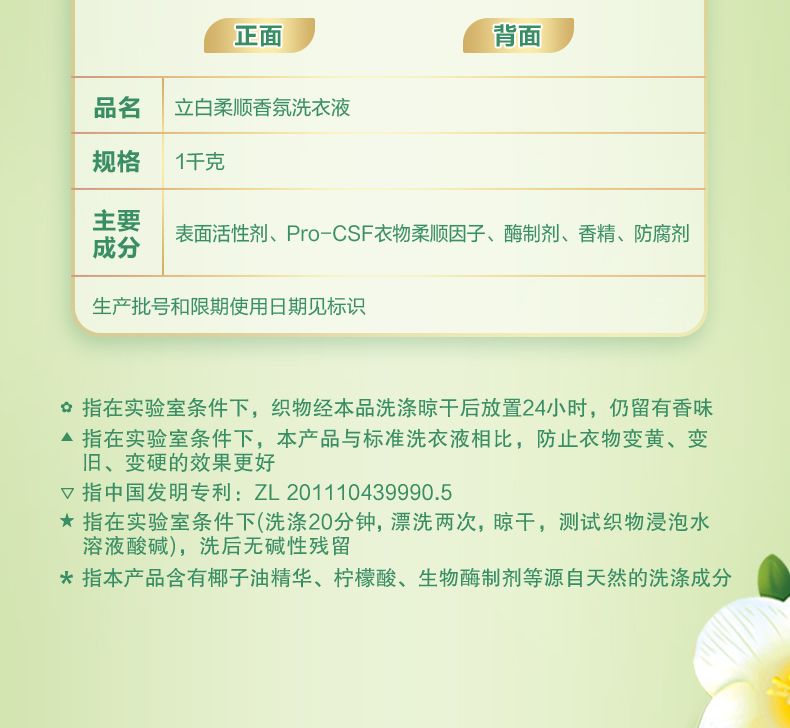 商品名称:立白柔顺香氛洗衣液1kg