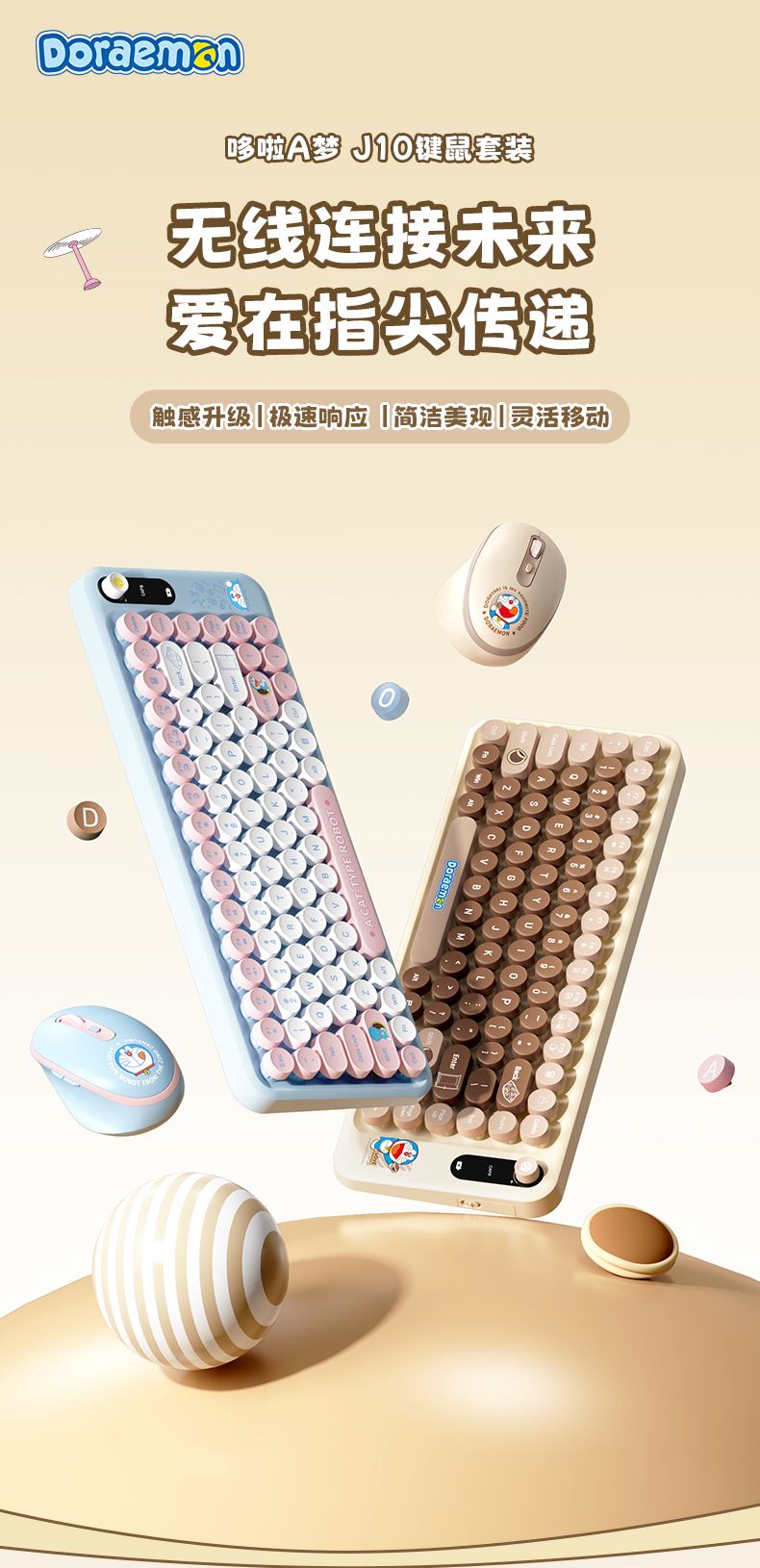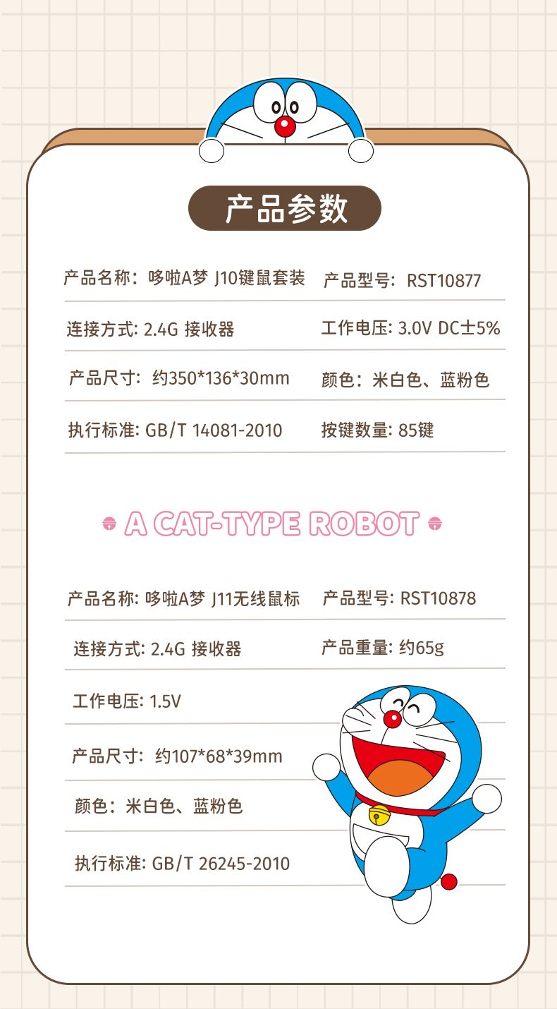 商品名称:ROCK 哆啦A梦 J10键鼠套装