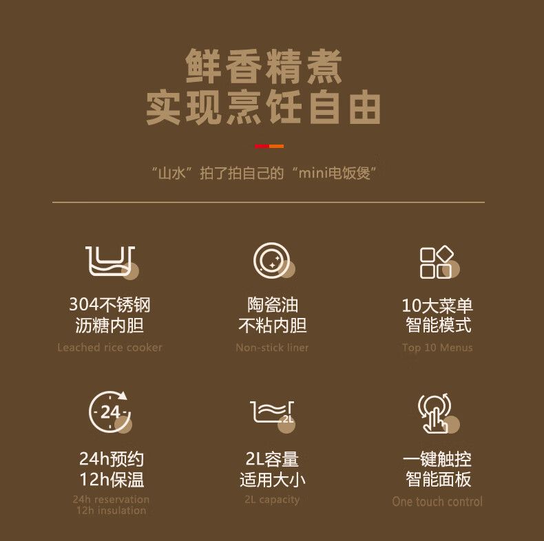 山水(SANSUI)2L迷你智能电饭煲SF-F20C