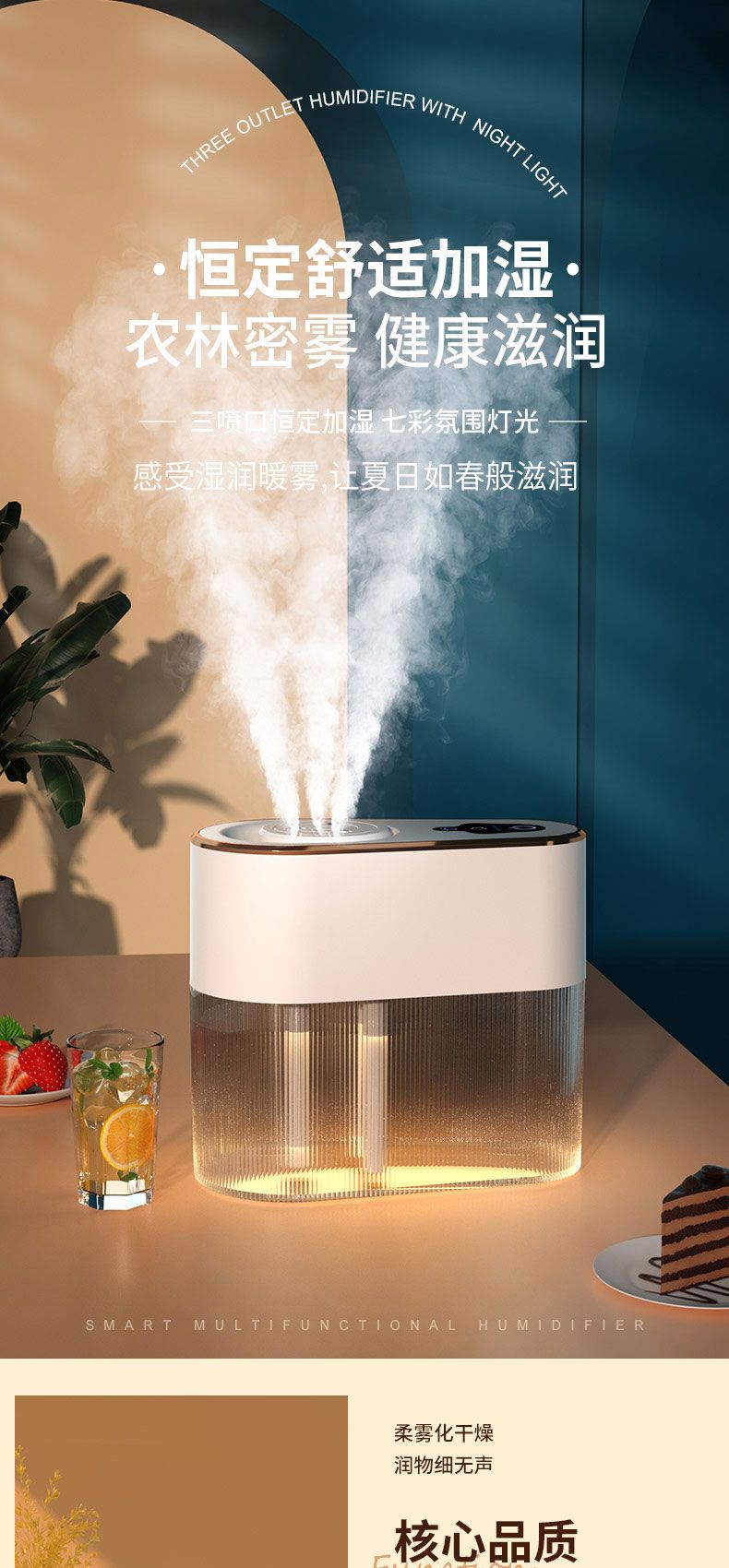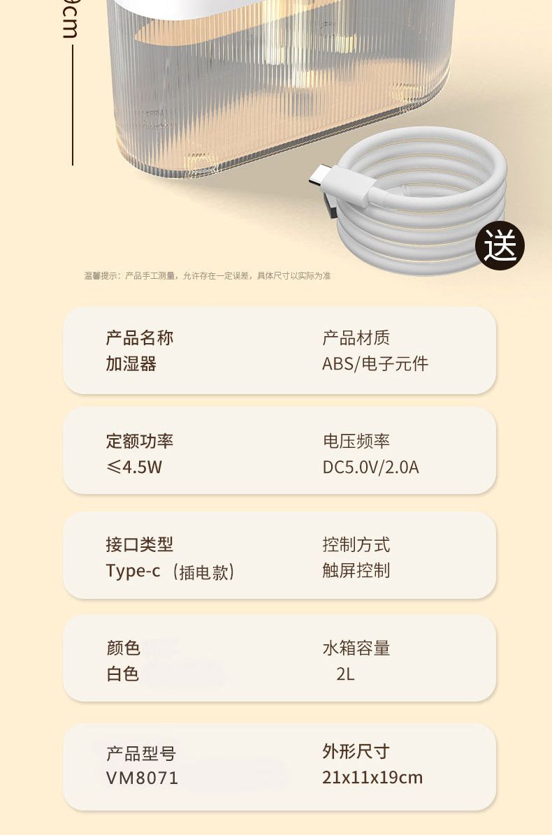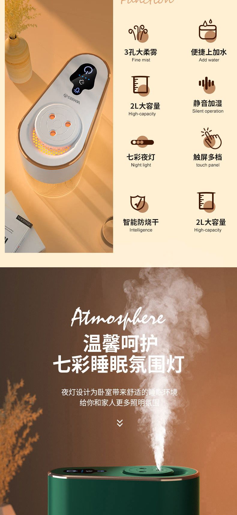 商品名称:维米仕(vimees)三孔加湿器2L 白色VM8071