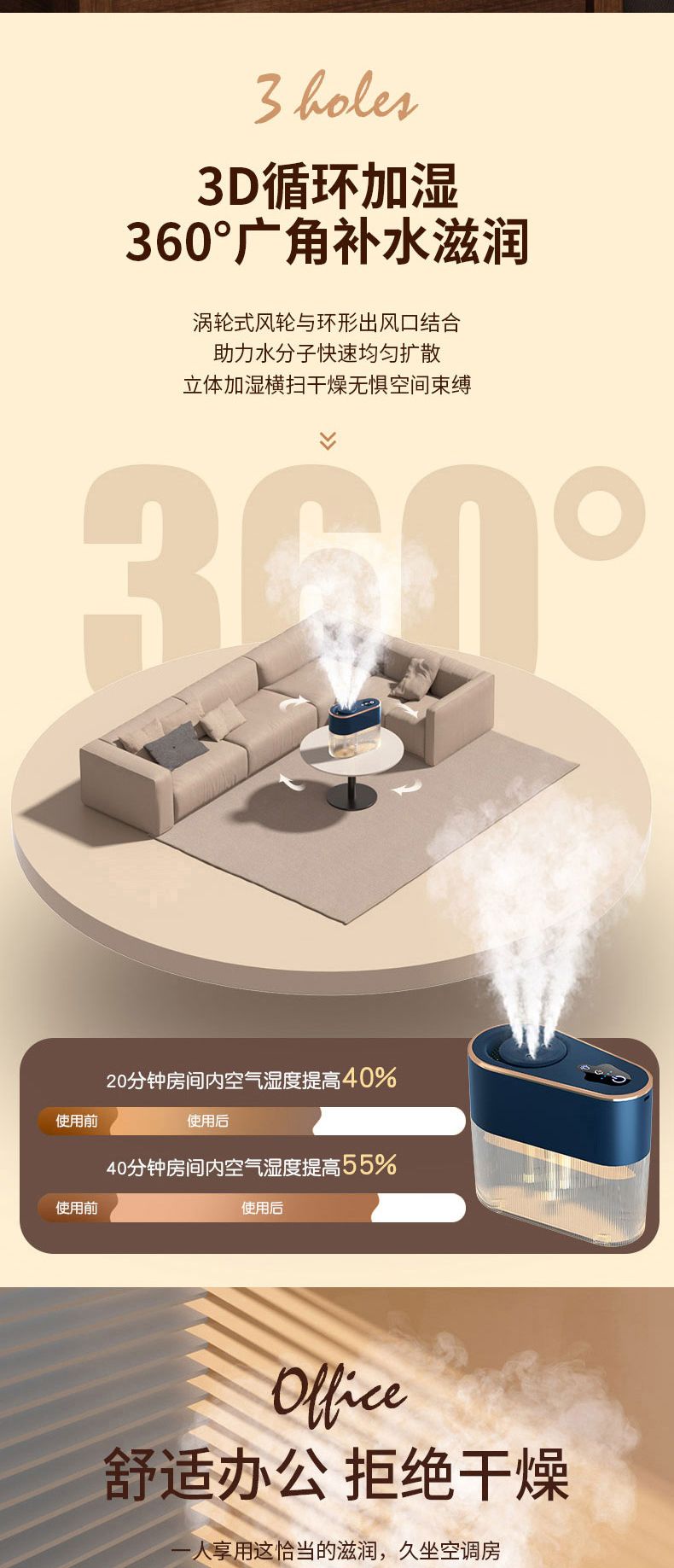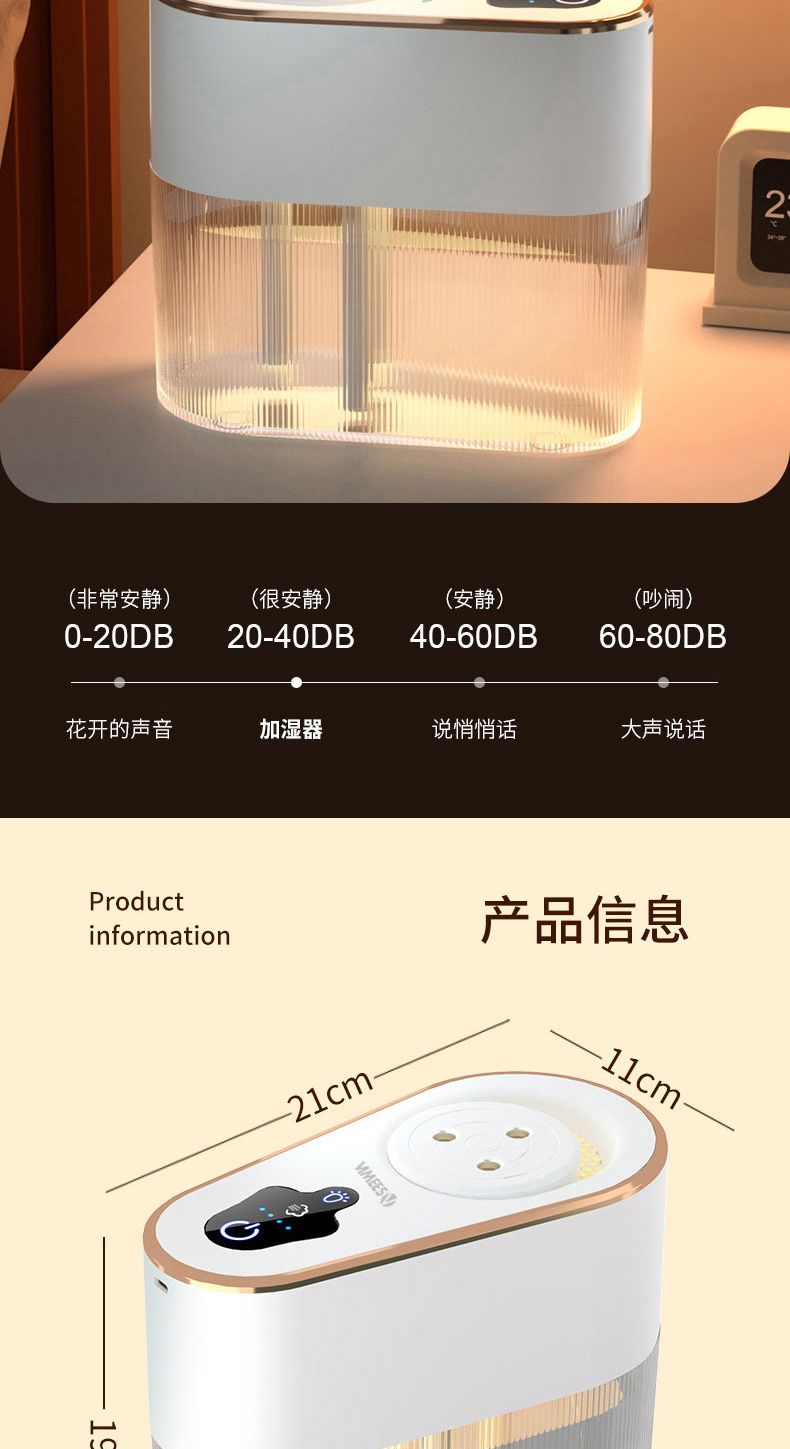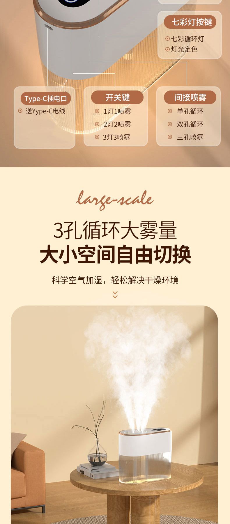 商品名称:维米仕(vimees)三孔加湿器2L 白色VM8071