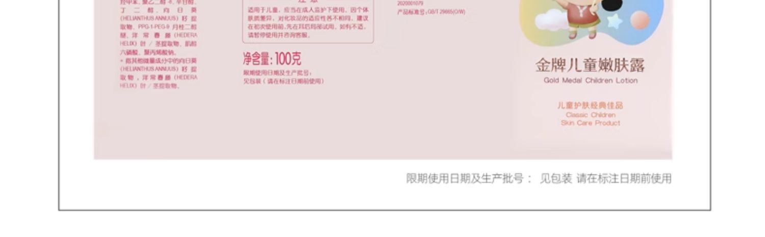 商品名称:郁美净 金牌嫩肤露 100g