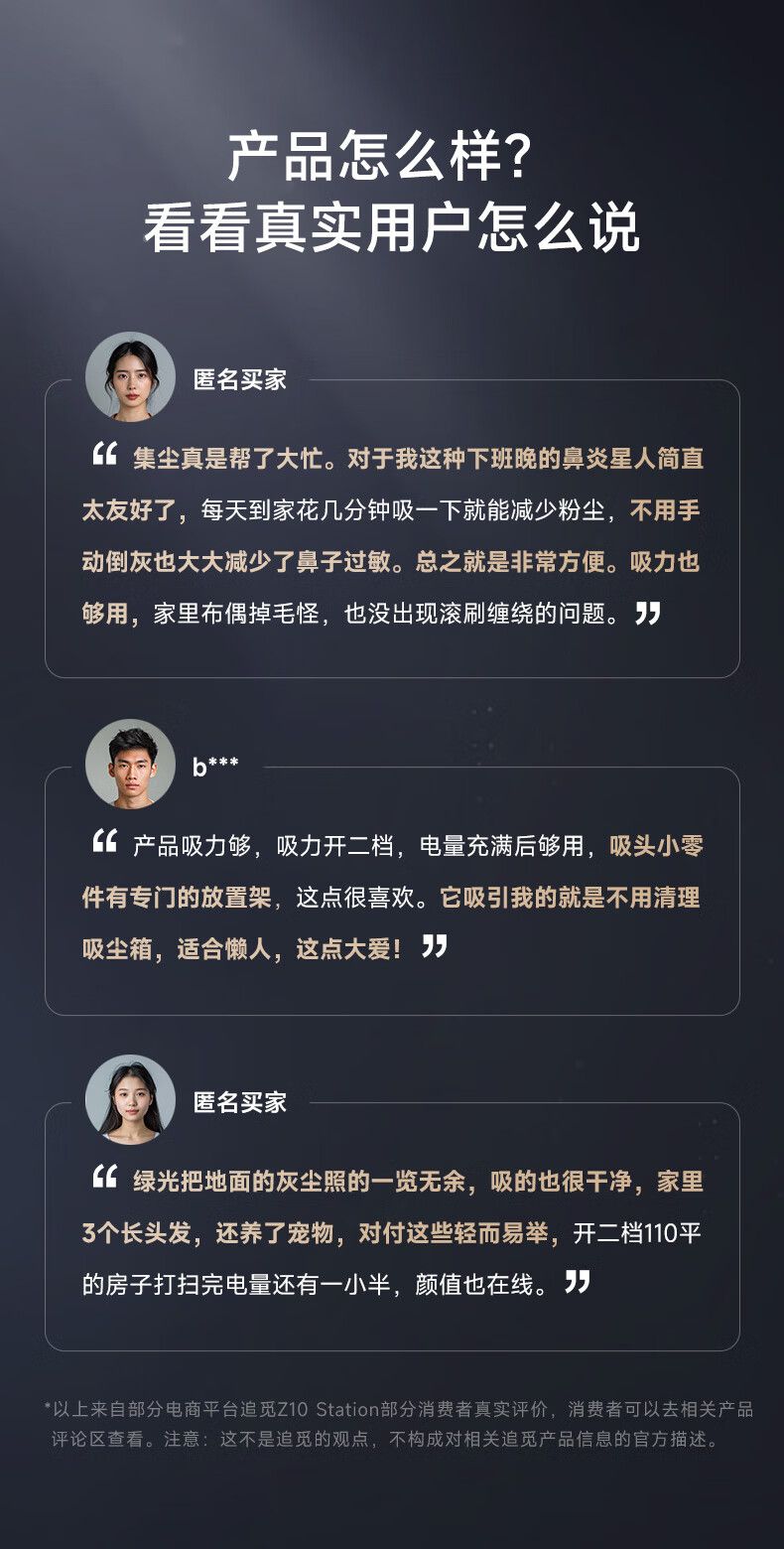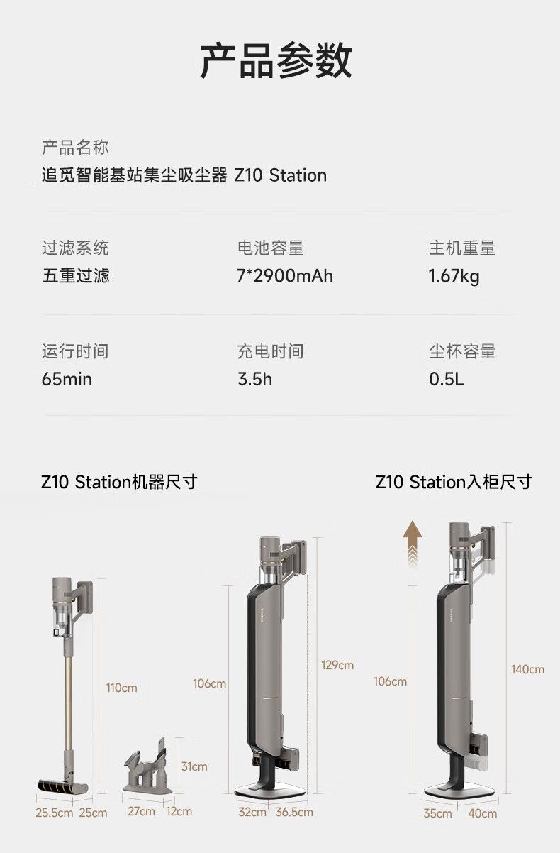 商品名称:追觅自集尘吸尘器Z10 Station 家用智能无线手持 大吸力长续航 双绿光显尘除菌除螨仪