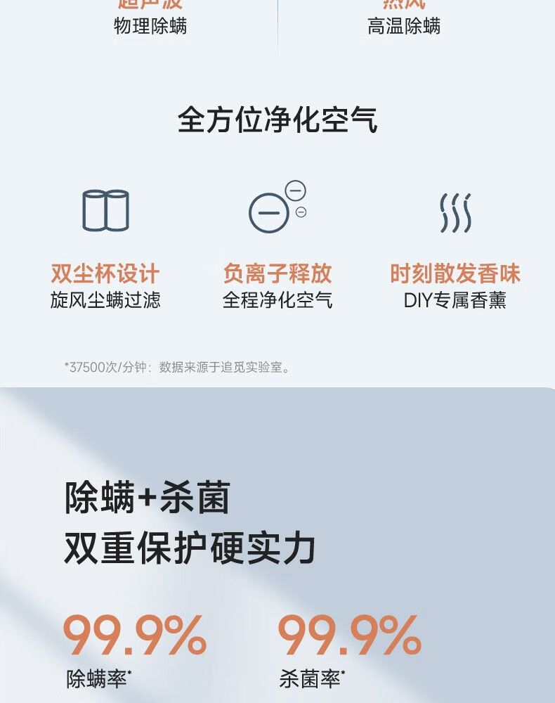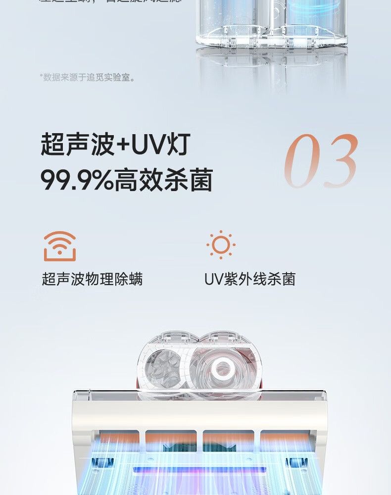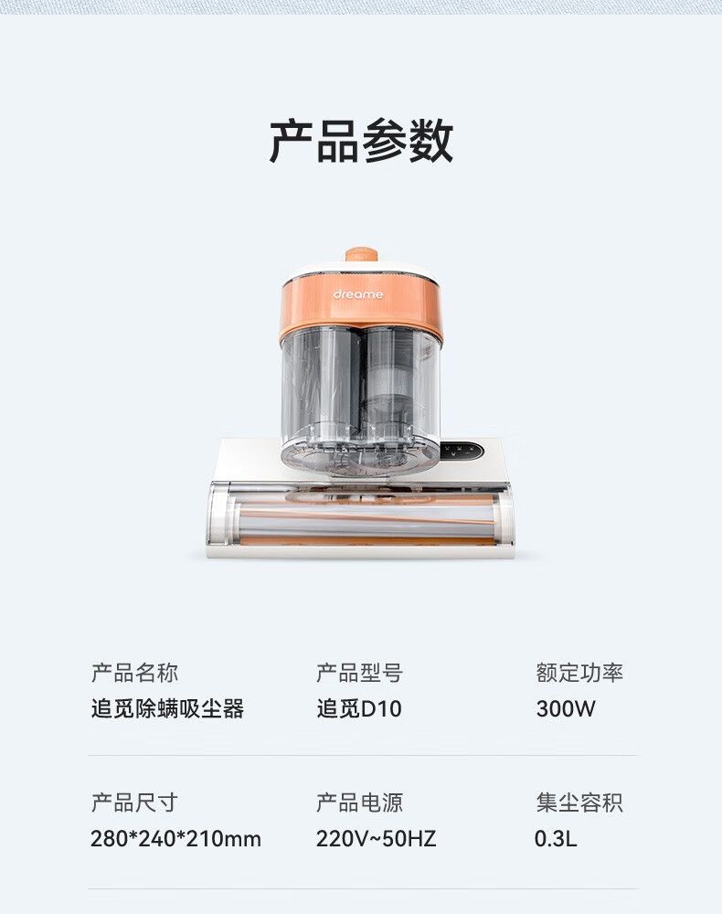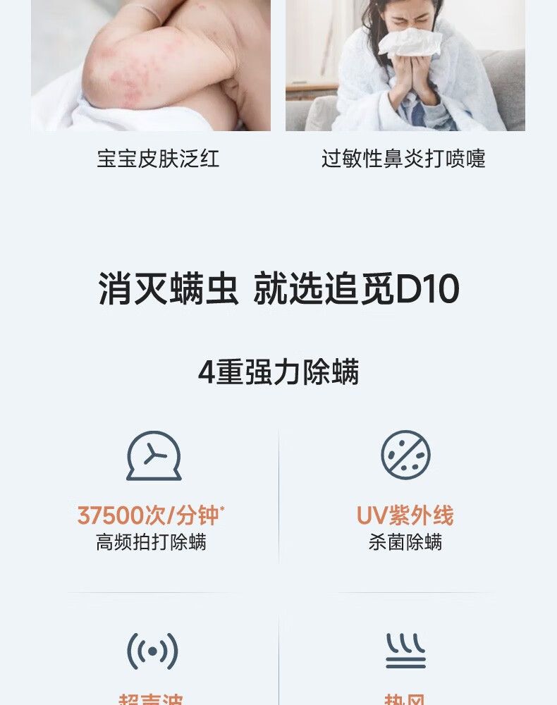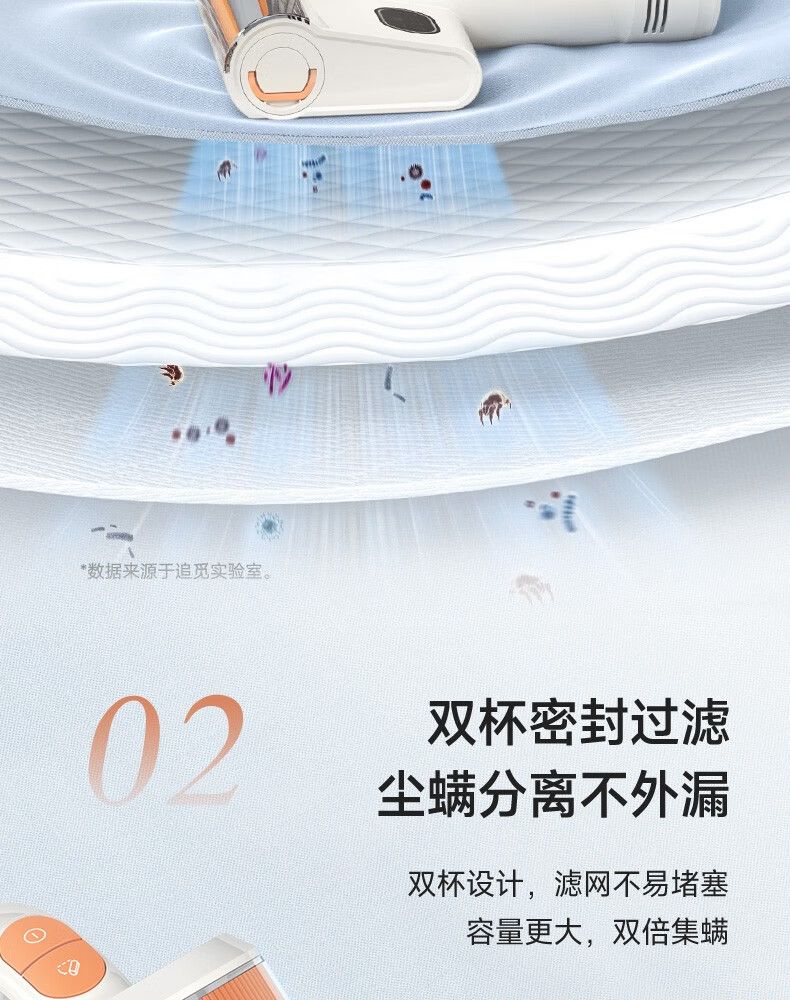 商品名称:追觅除螨仪D10 床上家用双杯尘螨分离吸尘器 UV紫外线杀菌除螨虫大吸力超声波