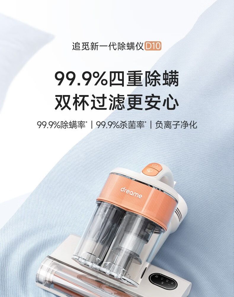 追觅除螨仪D10 床上家用双杯尘螨分离吸尘器 UV紫外线杀菌除螨虫大吸力超声波
