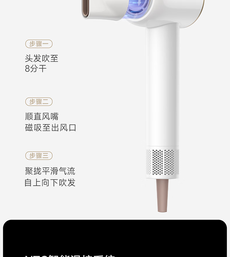 追觅韶光G20 家用高速护发电吹风 4档恒温速干护发吹风筒负离子高速吹风机
