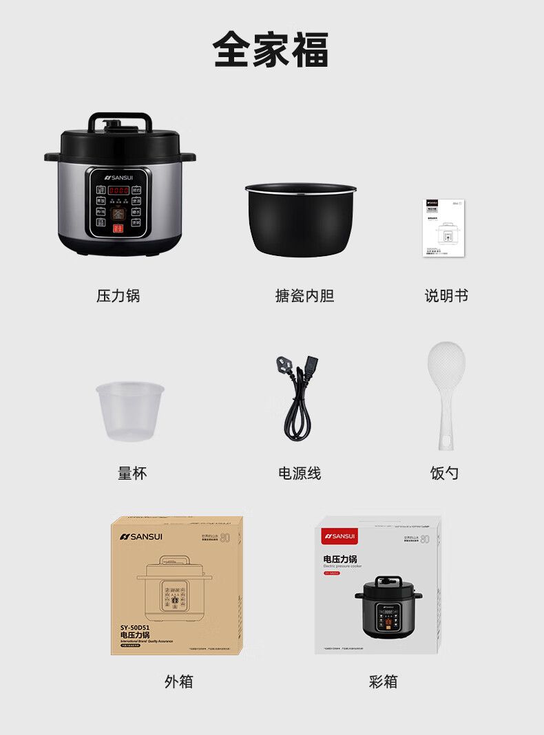 山水(SANSUI)5L智能电压力锅SY-50D51