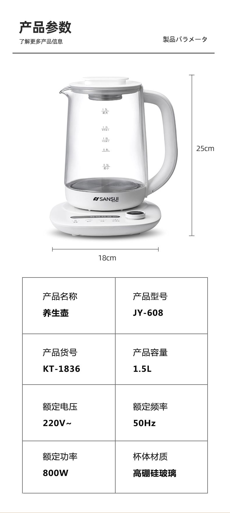 商品名称:山水(SANSUI)1.5L养生壶KT-1836