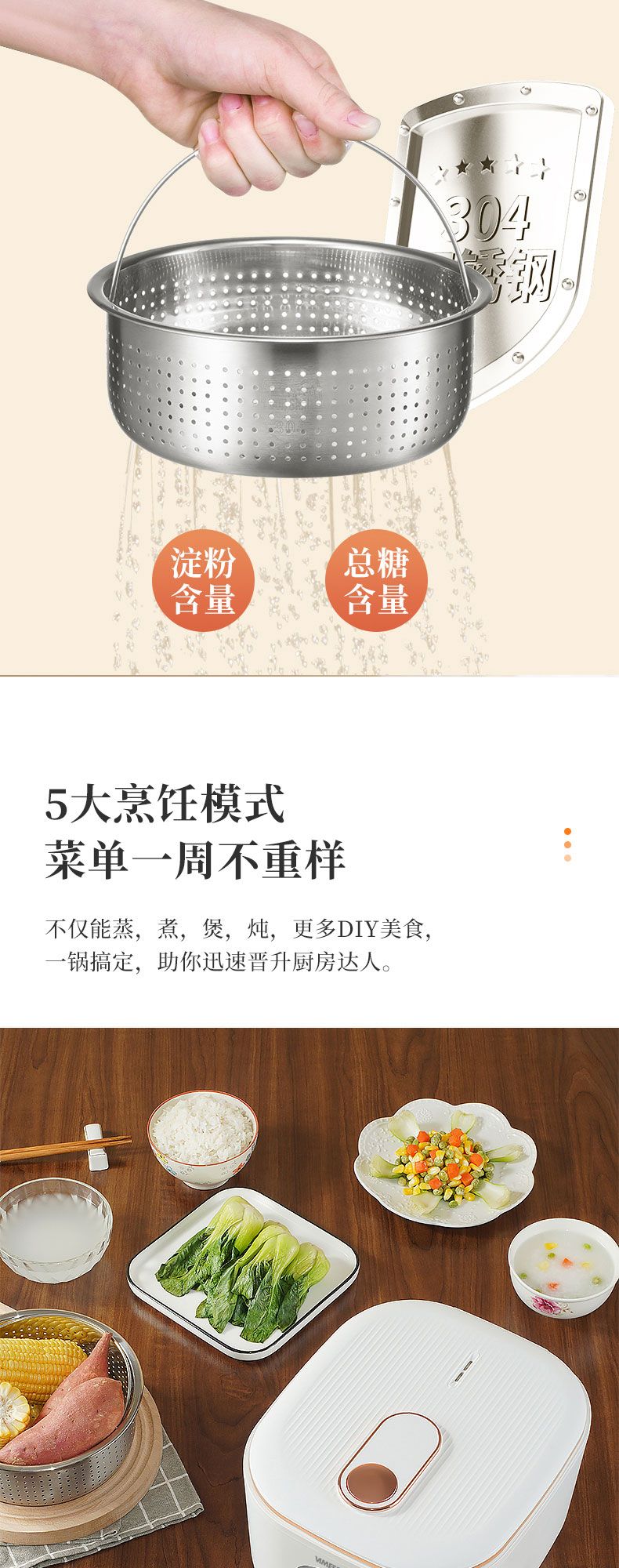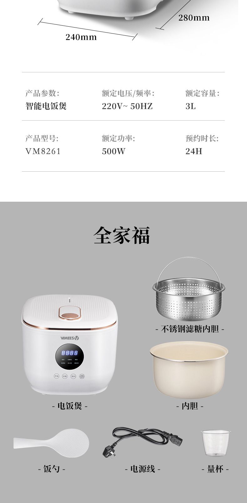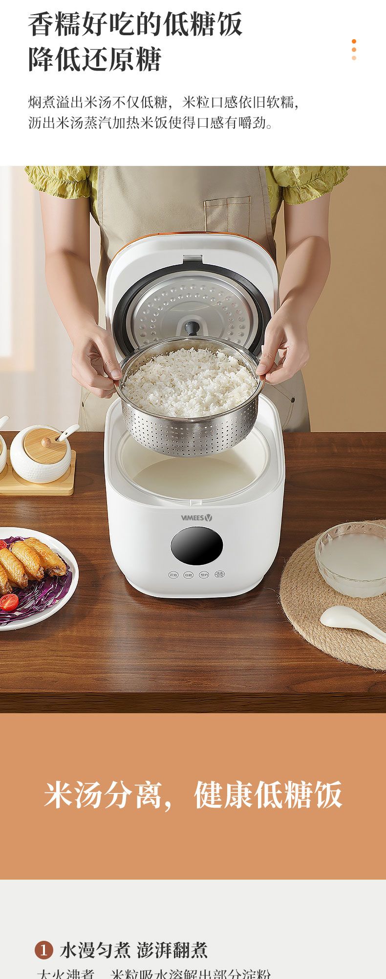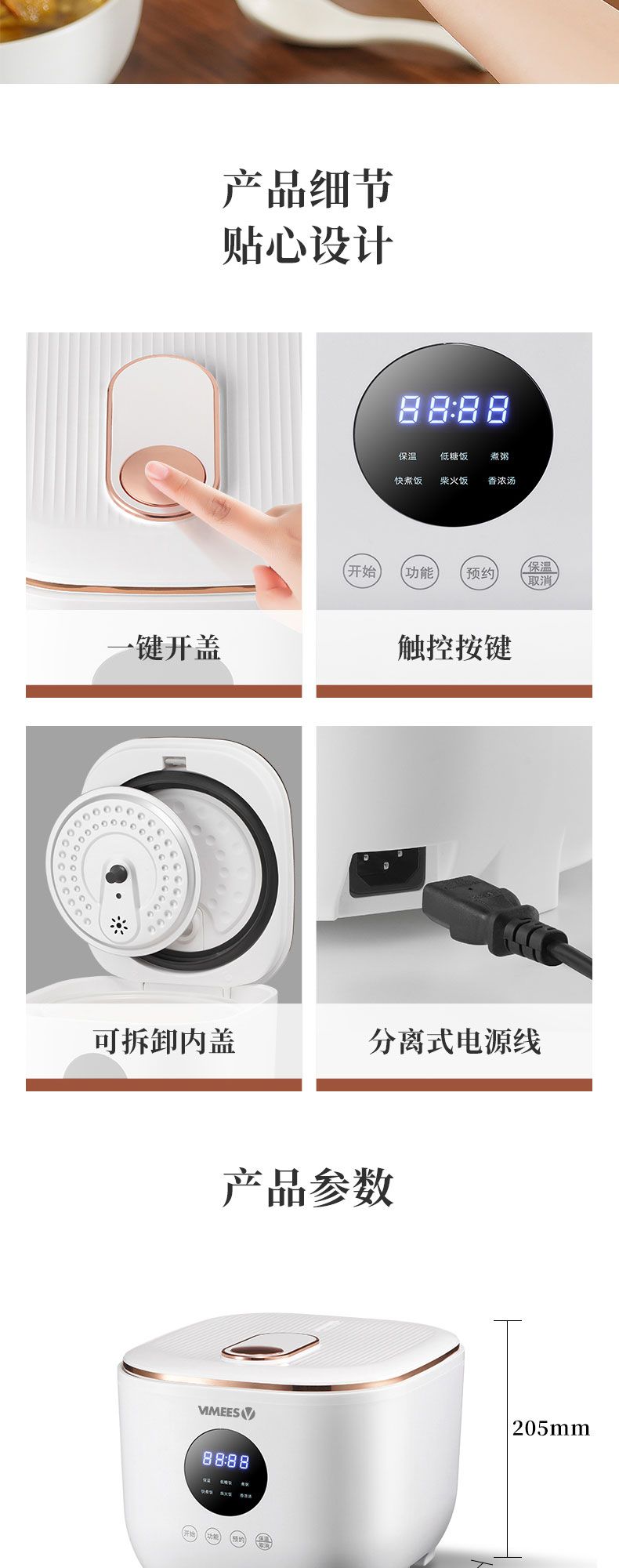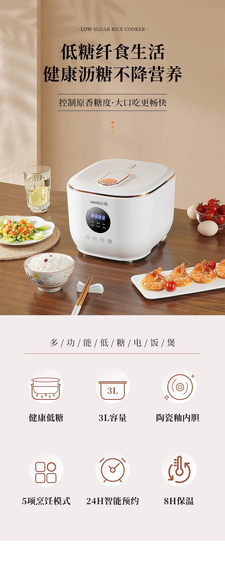 商品名称:维米仕(vimees)3L智能脱糖电饭煲 白色VM8261