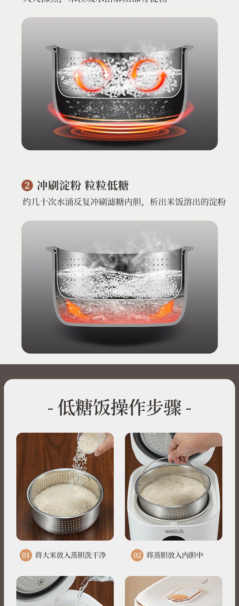 维米仕(vimees)3L智能脱糖电饭煲 白色VM8261