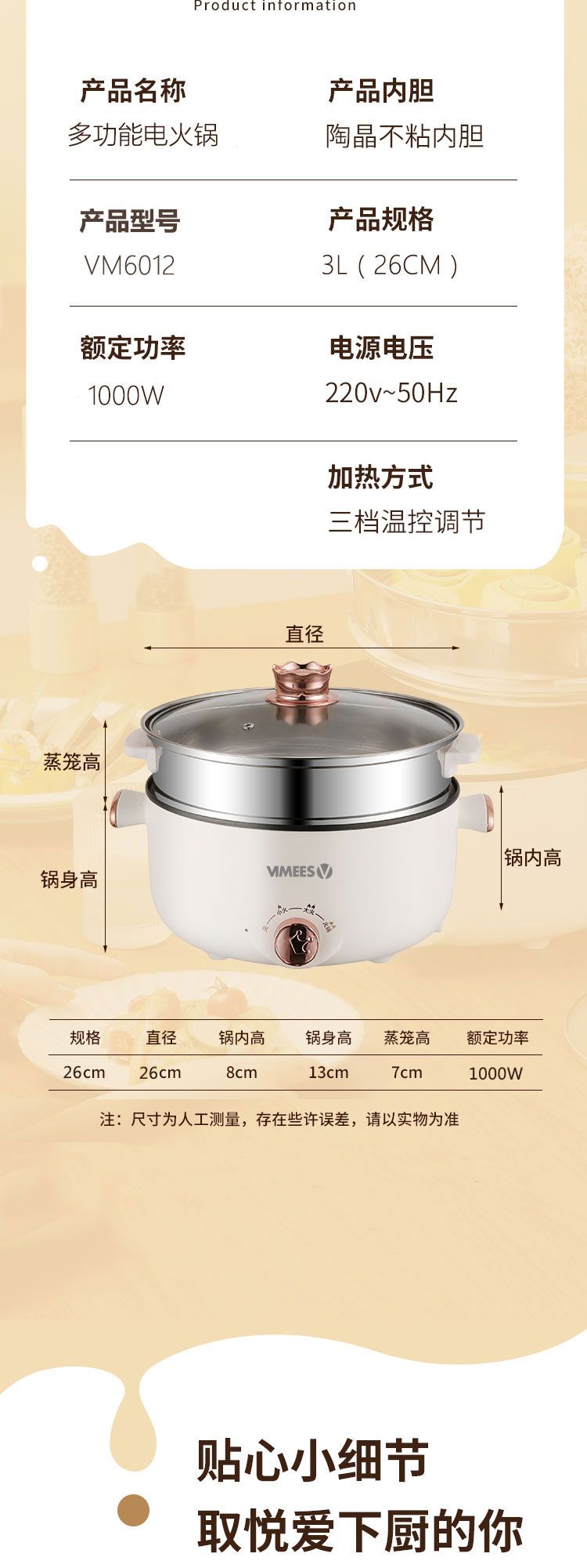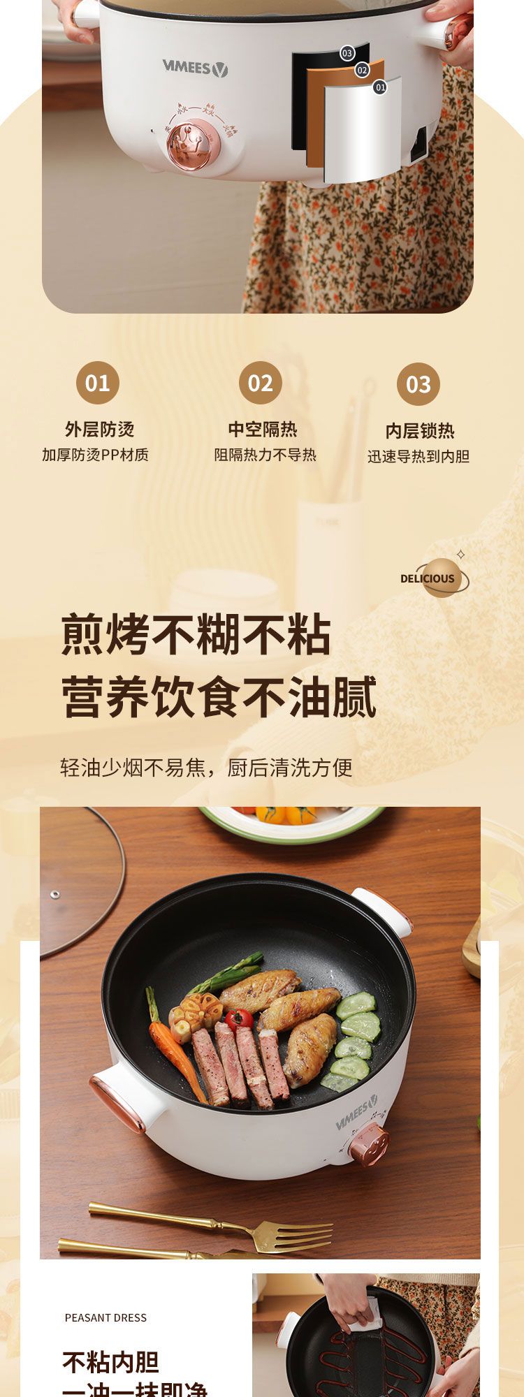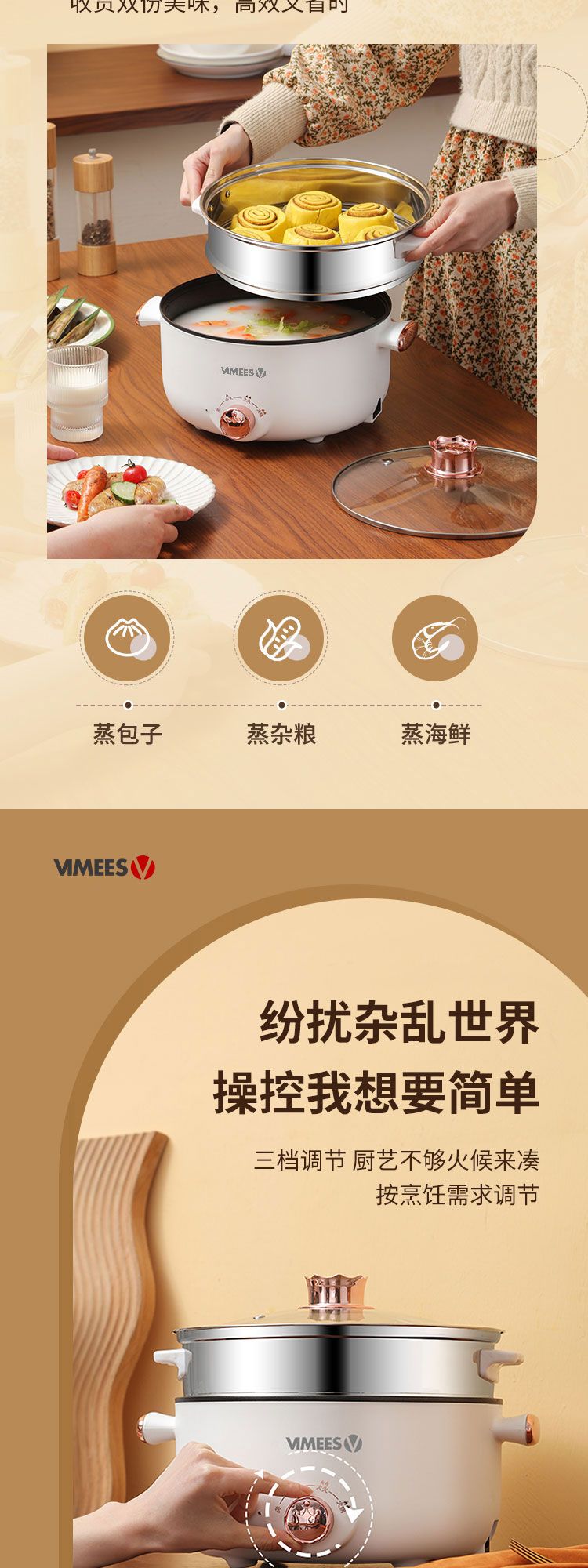 商品名称:维米仕(vimees)多功能双层电火锅3L 白色VM6012