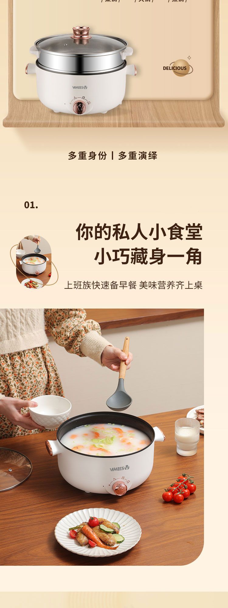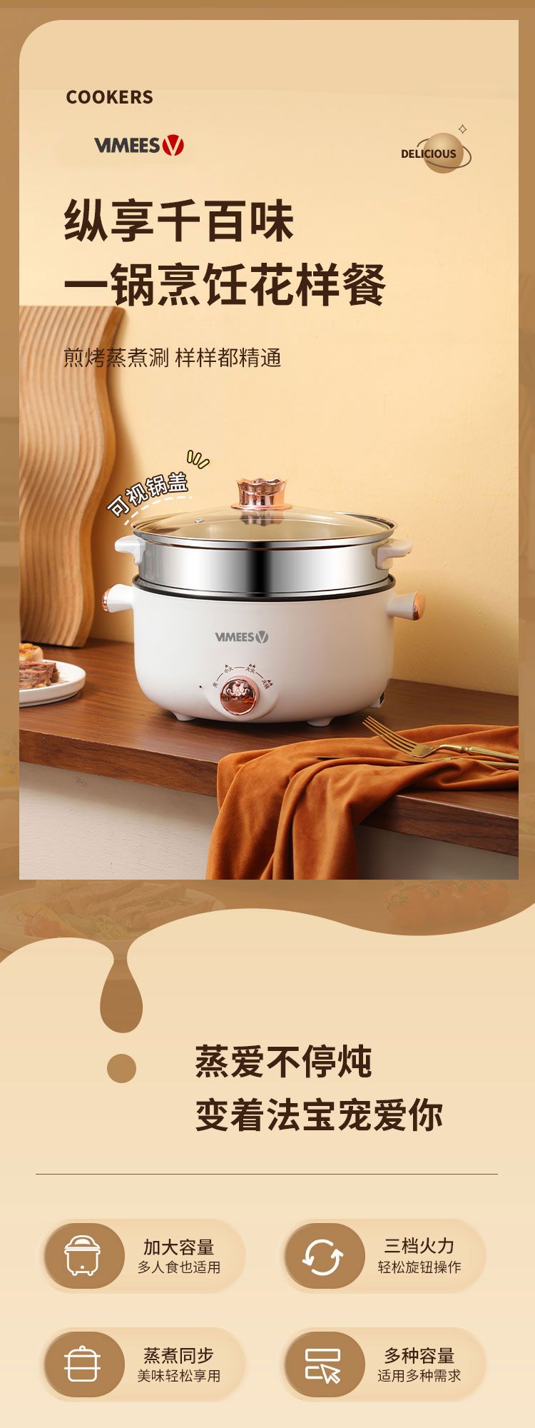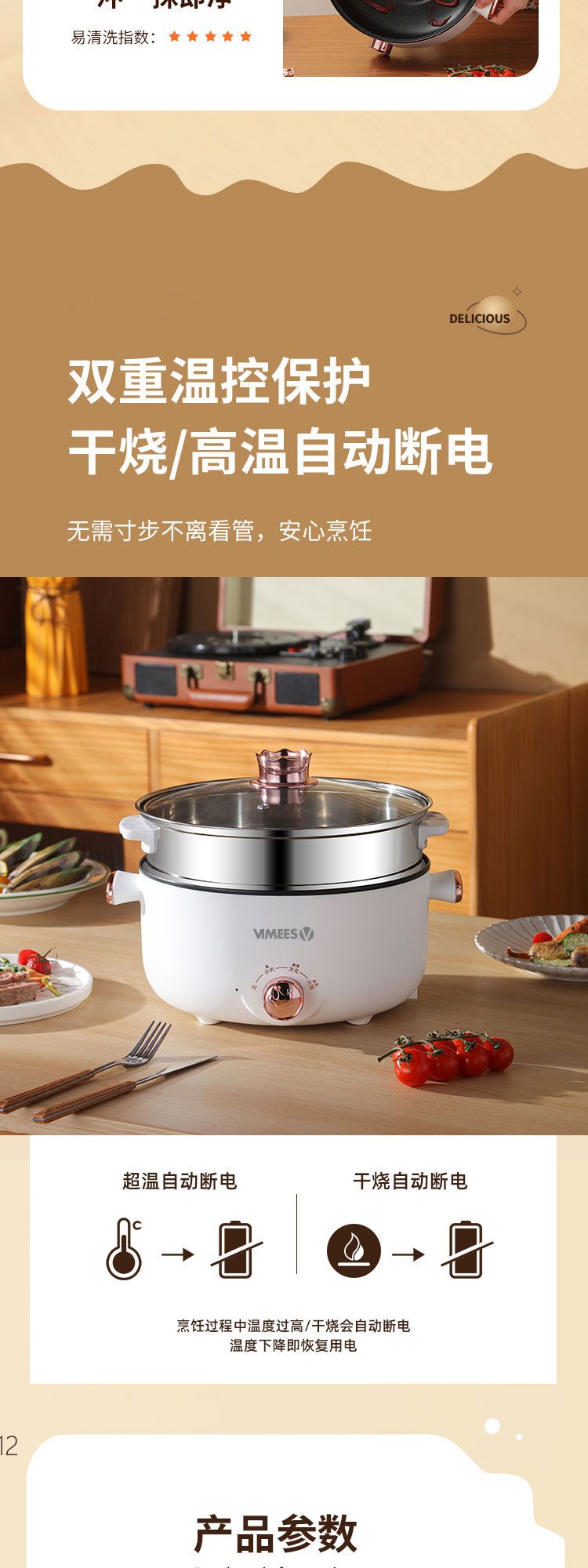 商品名称:维米仕(vimees)多功能双层电火锅3L 白色VM6012