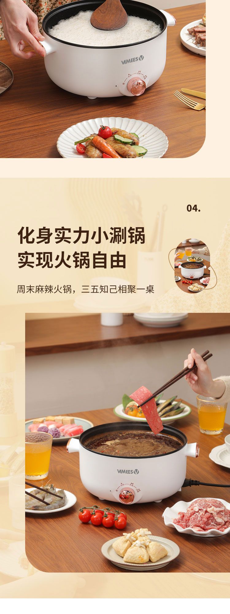维米仕(vimees)多功能双层电火锅3L 白色VM6012