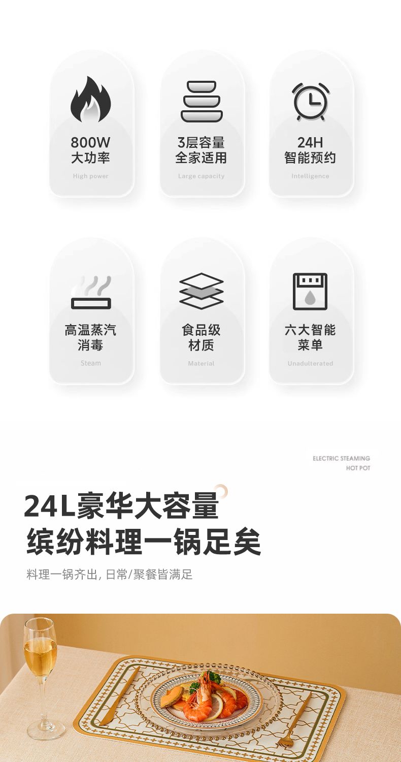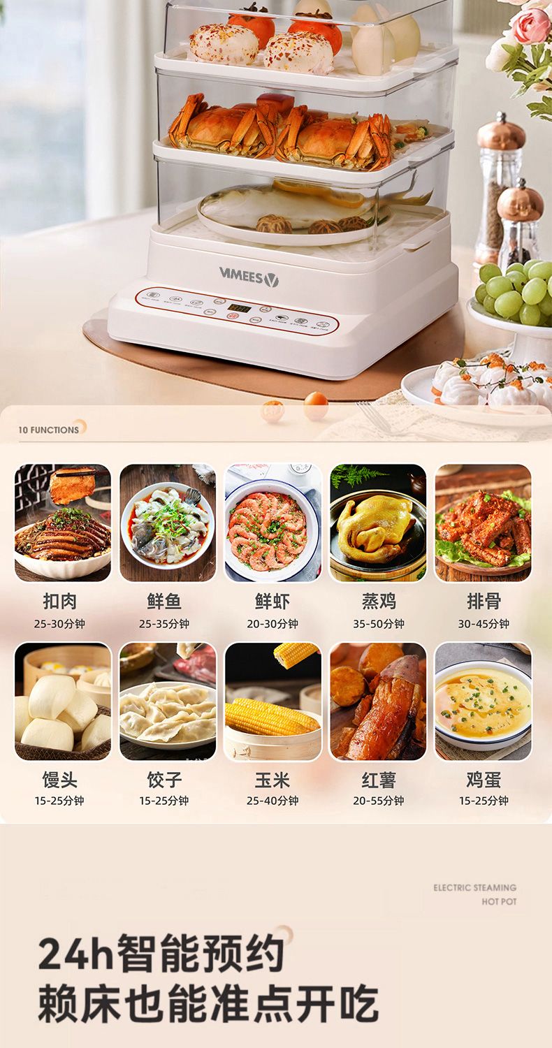 商品名称:维米仕(vimees)超大多功能电蒸锅24L 白色VM8091