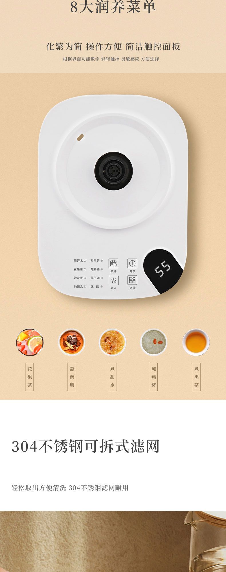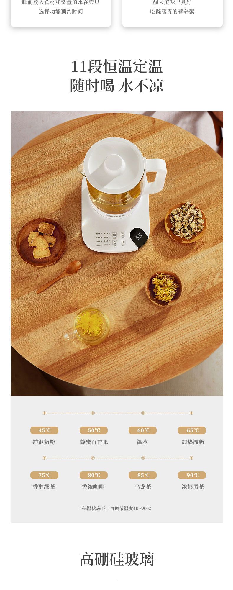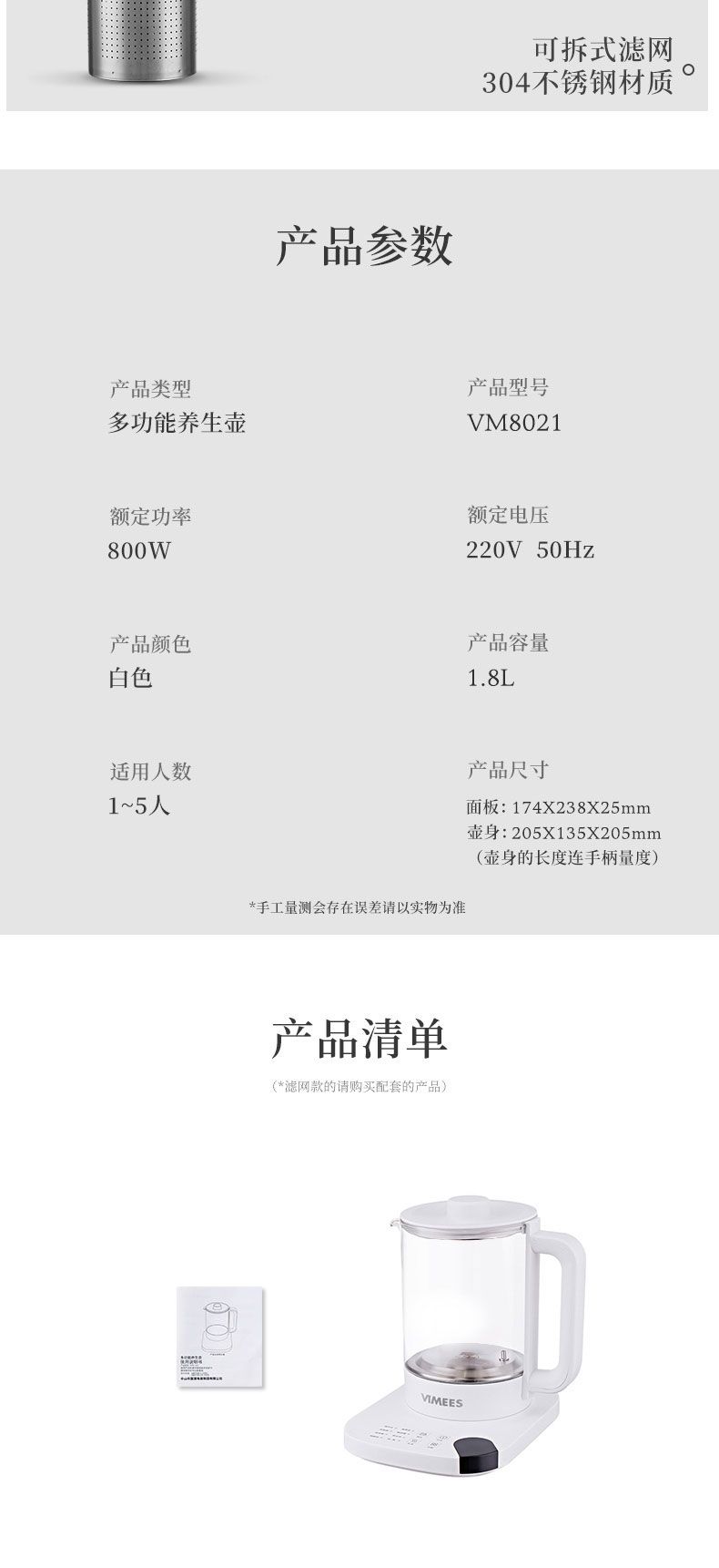 商品名称:维米仕(vimees)多功能智能养生壶 带滤网 1.8L 白色VM8021