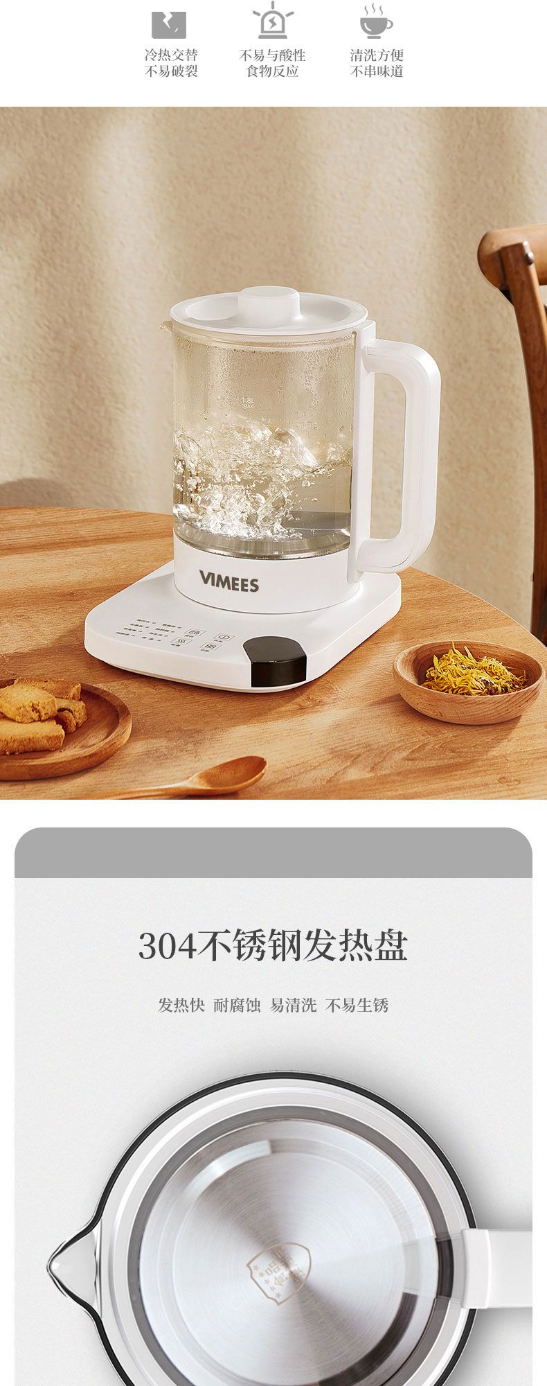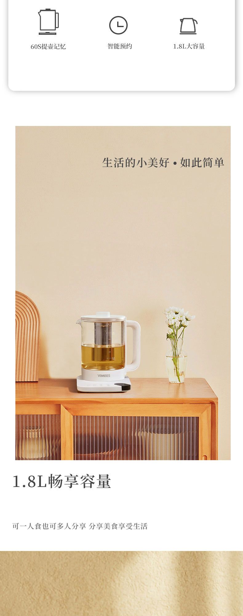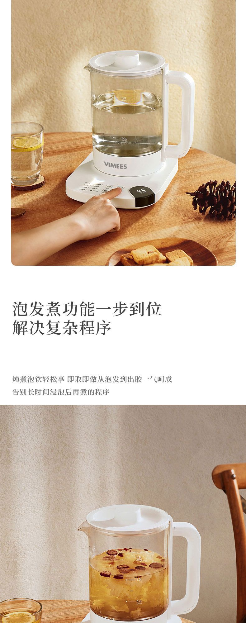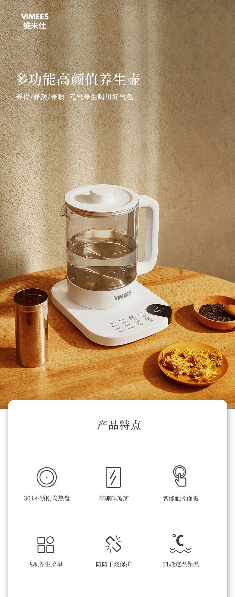 维米仕(vimees)多功能智能养生壶 带滤网 1.8L 白色VM8021