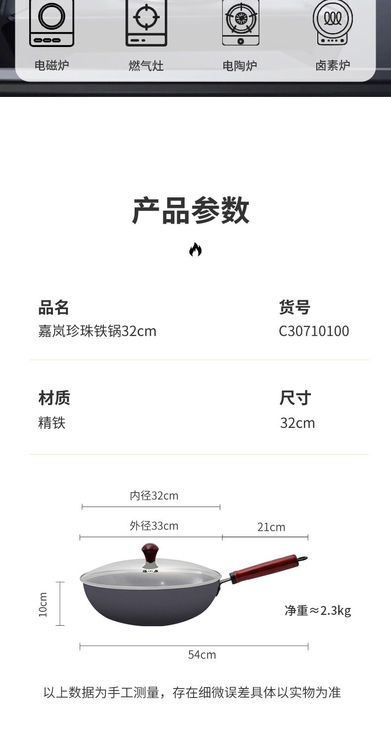 商品名称:张小泉嘉岚珍珠铁锅C30710100