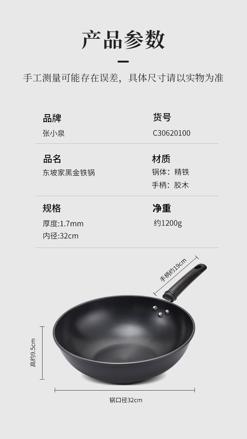 商品名称:张小泉东坡家黑金铁锅C30620100