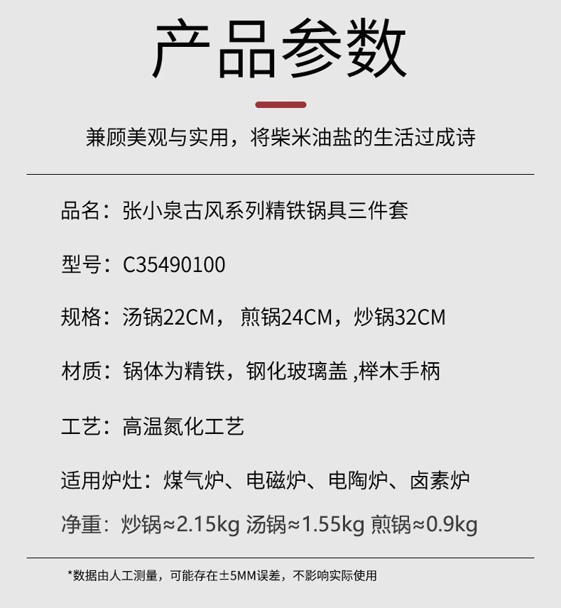 商品名称:张小泉古风系列精铁锅具三件套C35490100