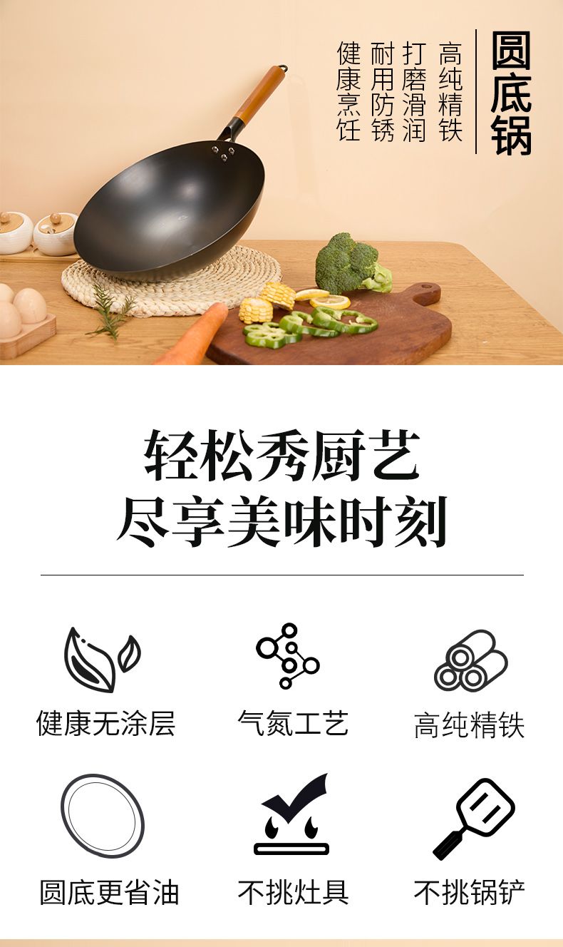 商品名称:张小泉家味圆底铁锅(无盖)C32920100