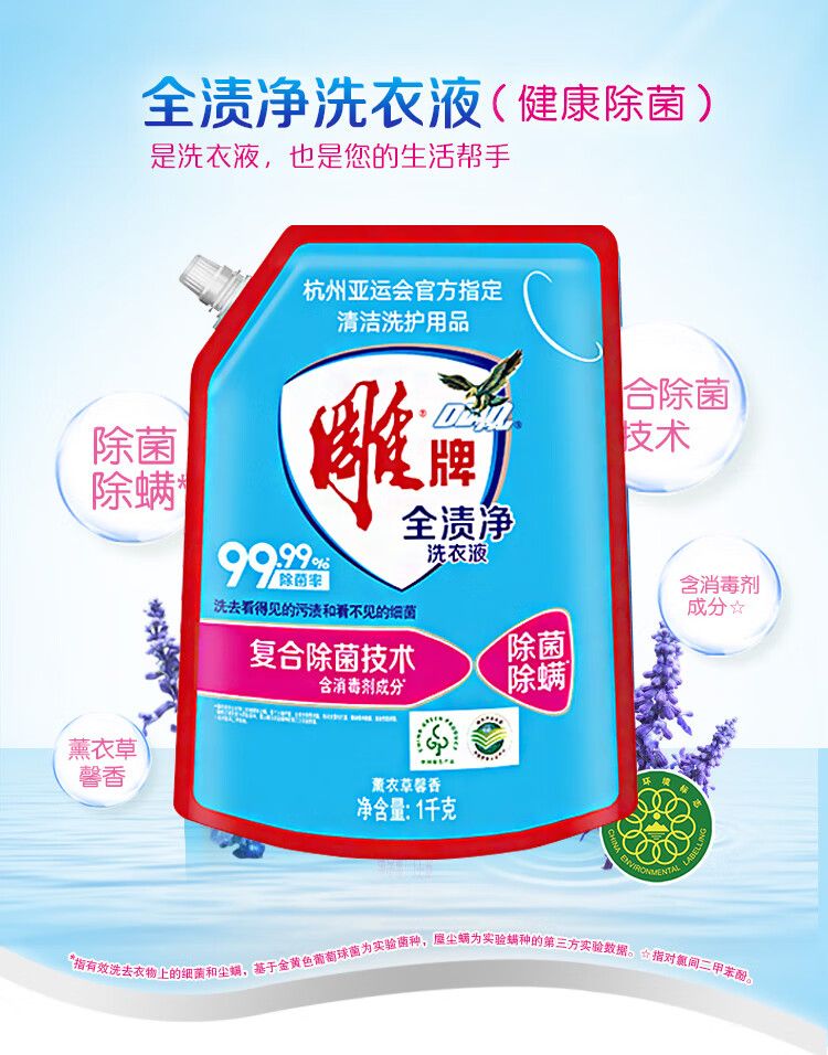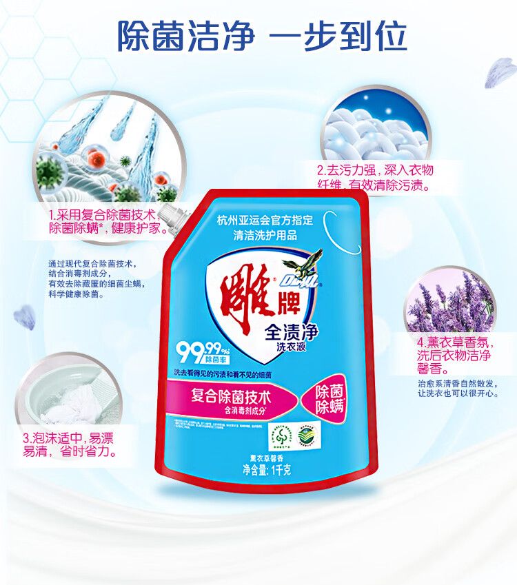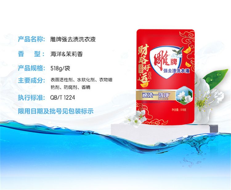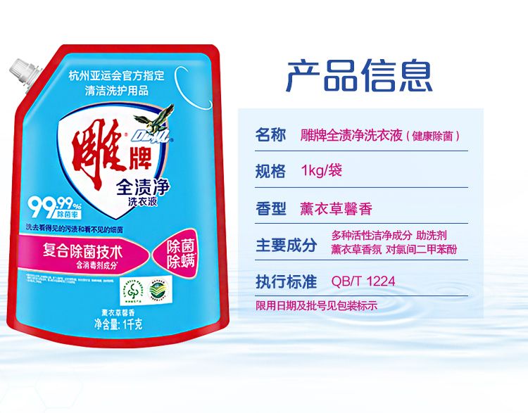 商品名称:雕牌全渍净洗衣液(健康除菌)1kg+雕牌强效去渍洗衣液518gx3袋