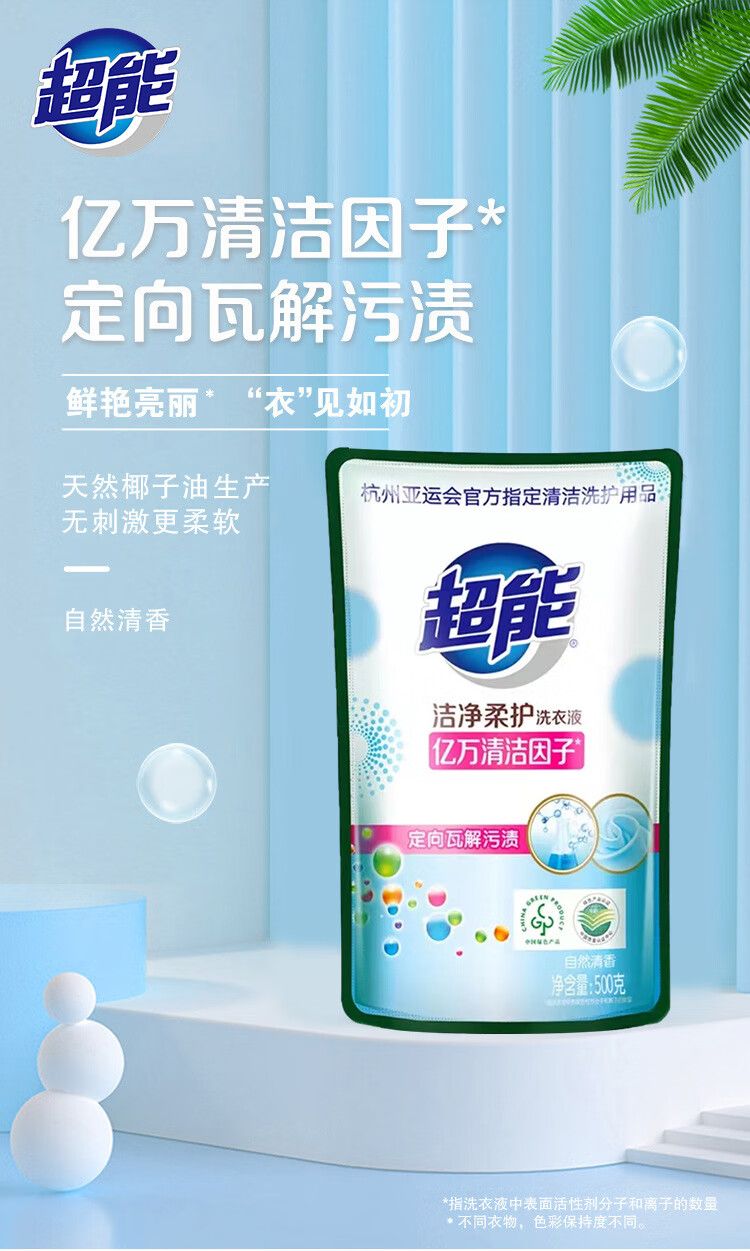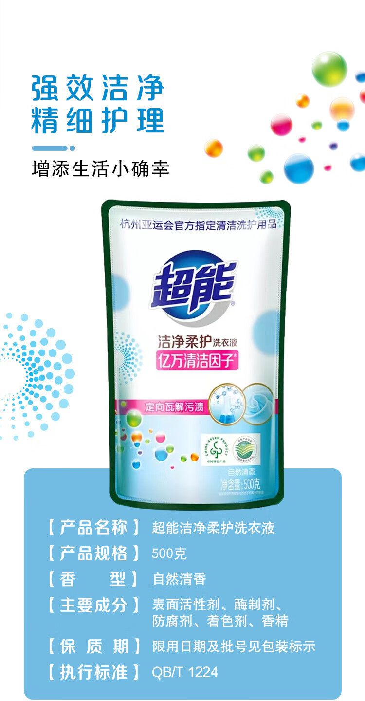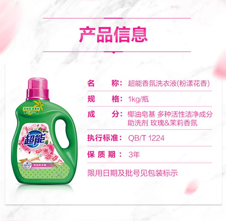 商品名称:超能 香氛洗衣液1kg+超能洁净柔护洗衣液(非单卖品500gx2袋)