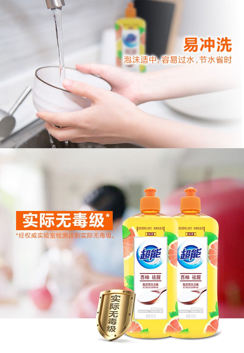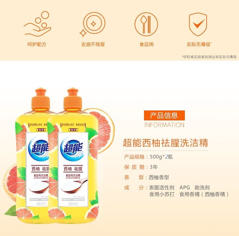 超能 离子洗洁精西柚祛腥(500gx2瓶)
