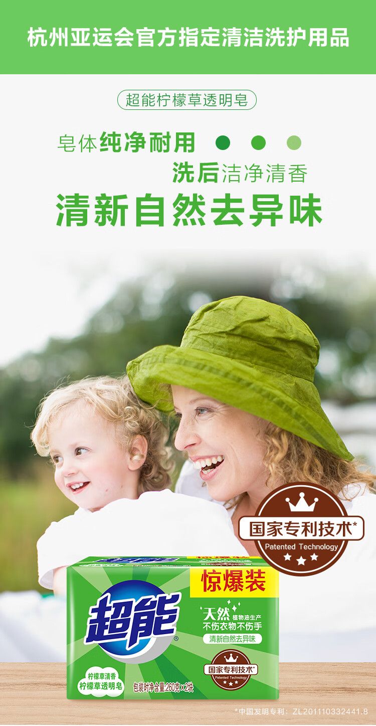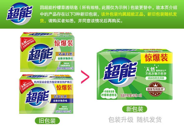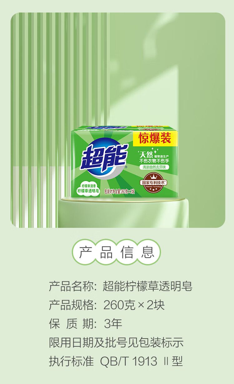 商品名称:超能 柠檬草透明皂(260gx2x2组)