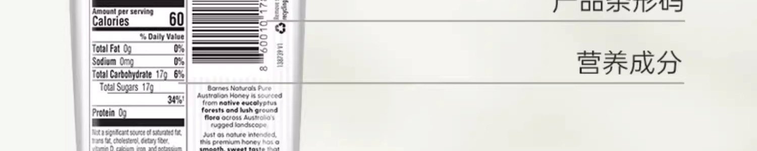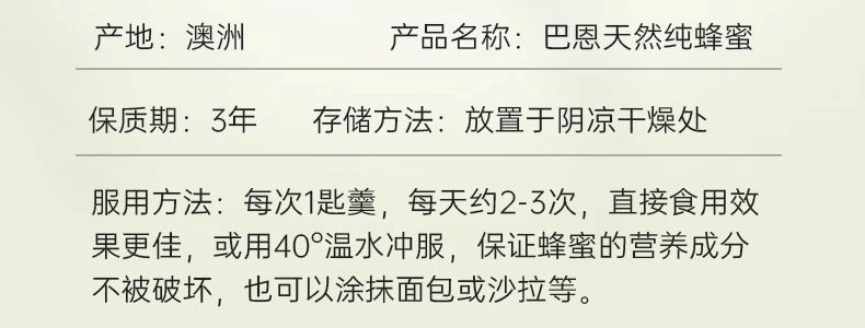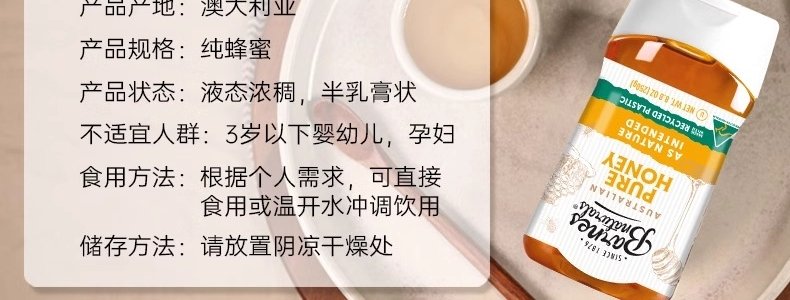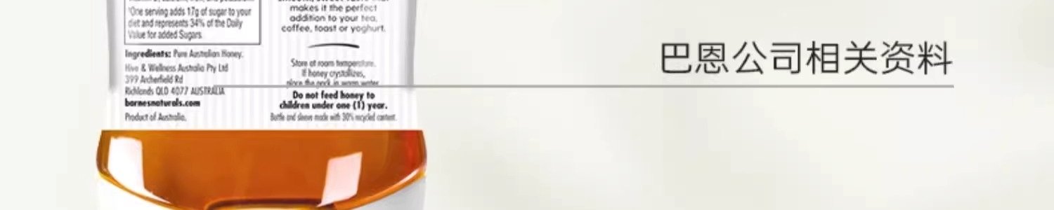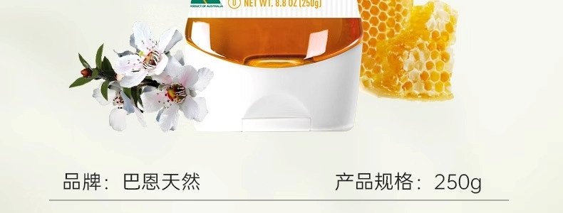 商品名称:巴恩天然 澳洲蜂蜜 250g/瓶