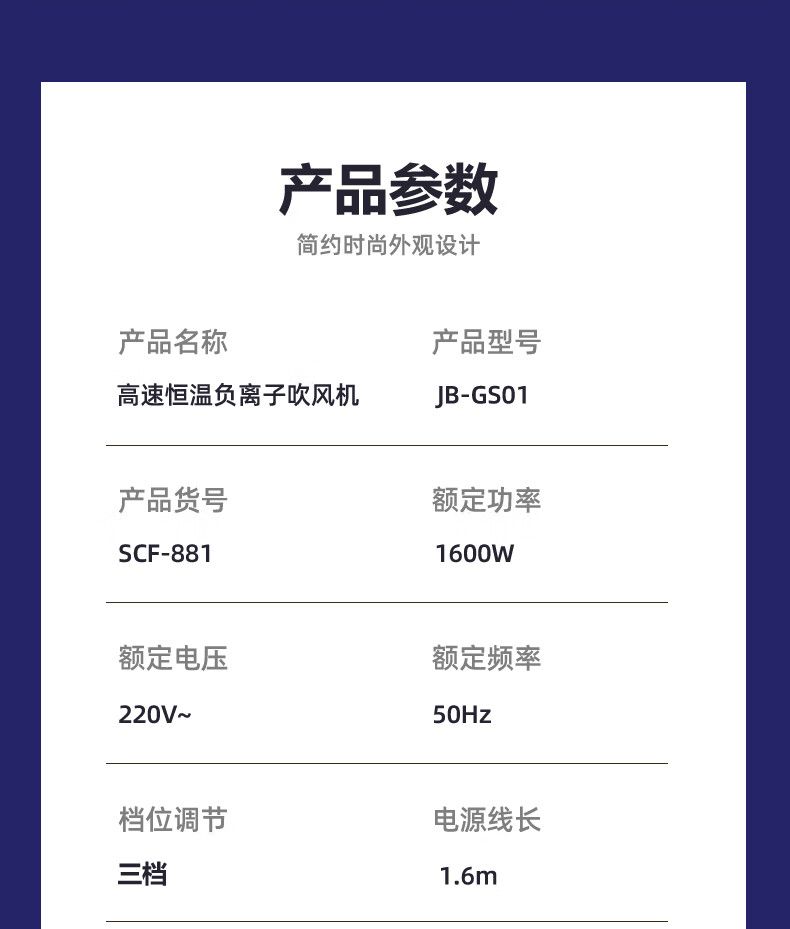商品名称:山水(SANSUI)高速恒温负离子电吹风SCF-881