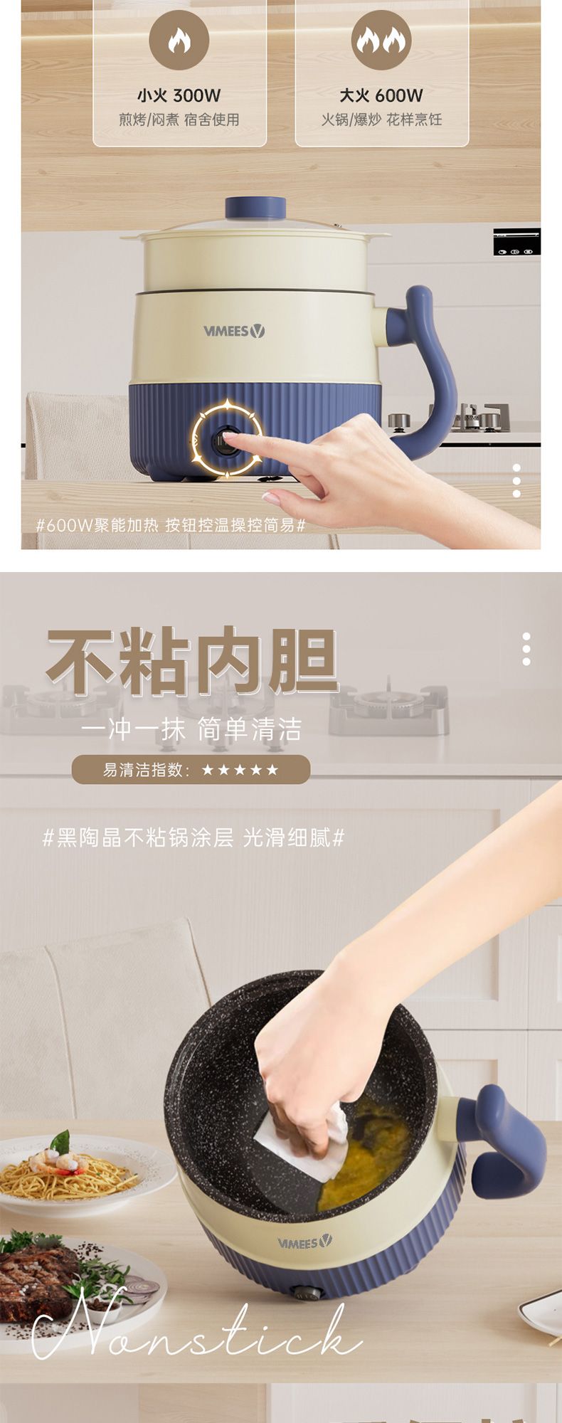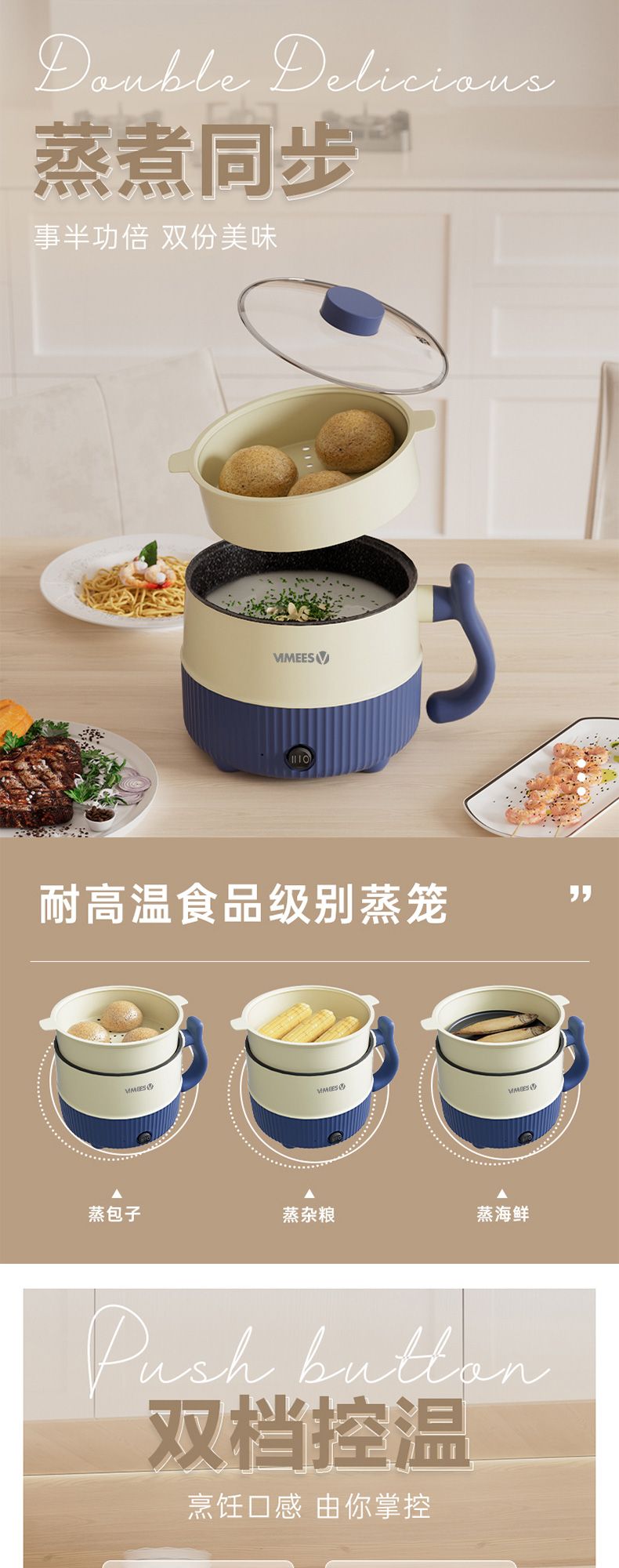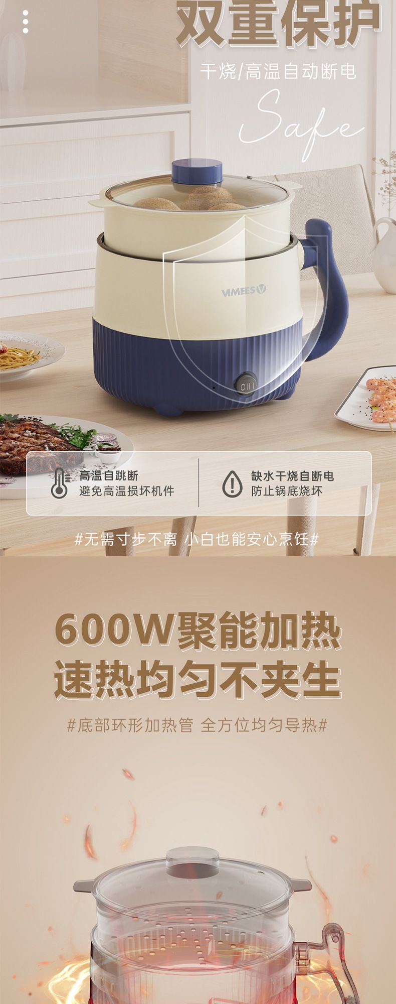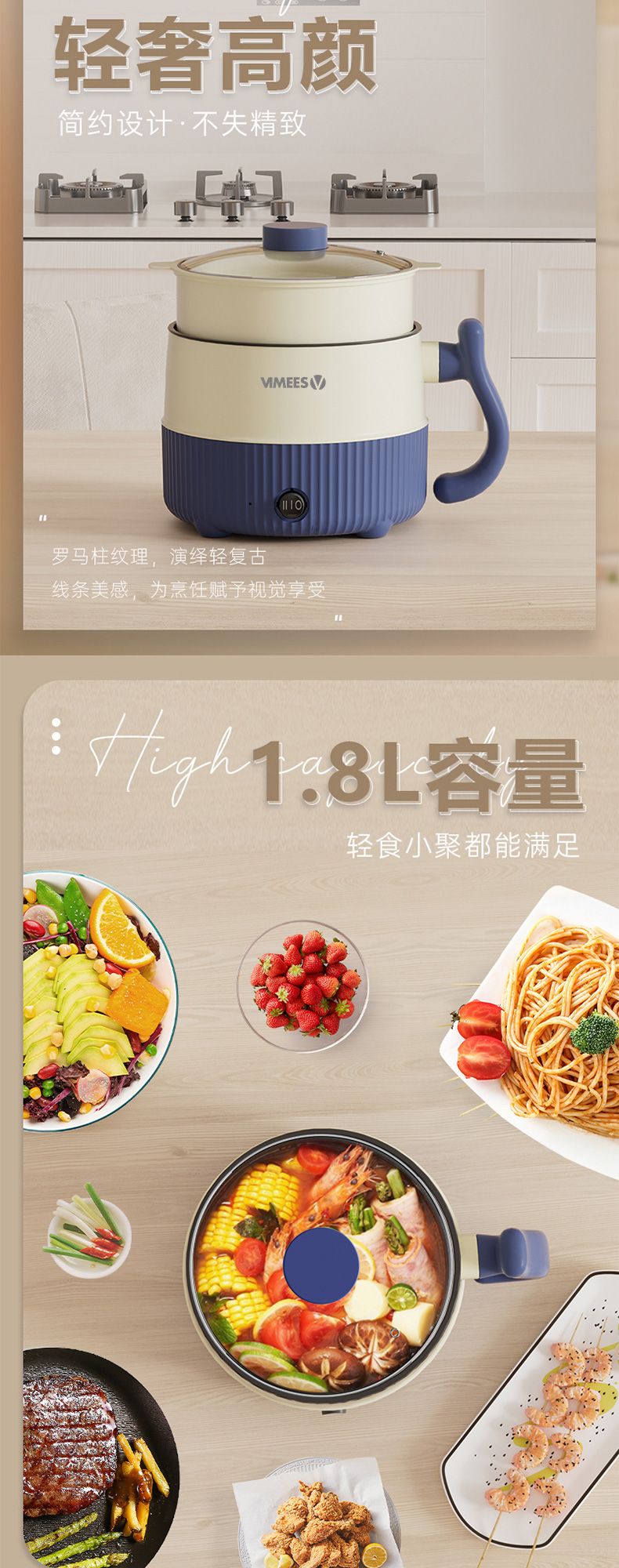 维米仕(vimees)多功能电煮锅1.8L 轻奢蓝 VM6011