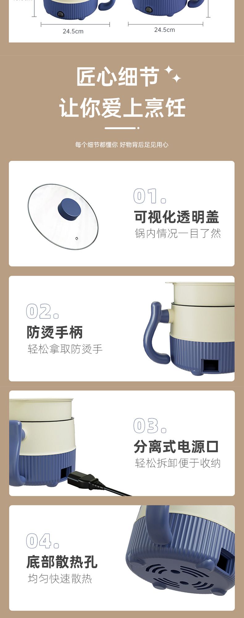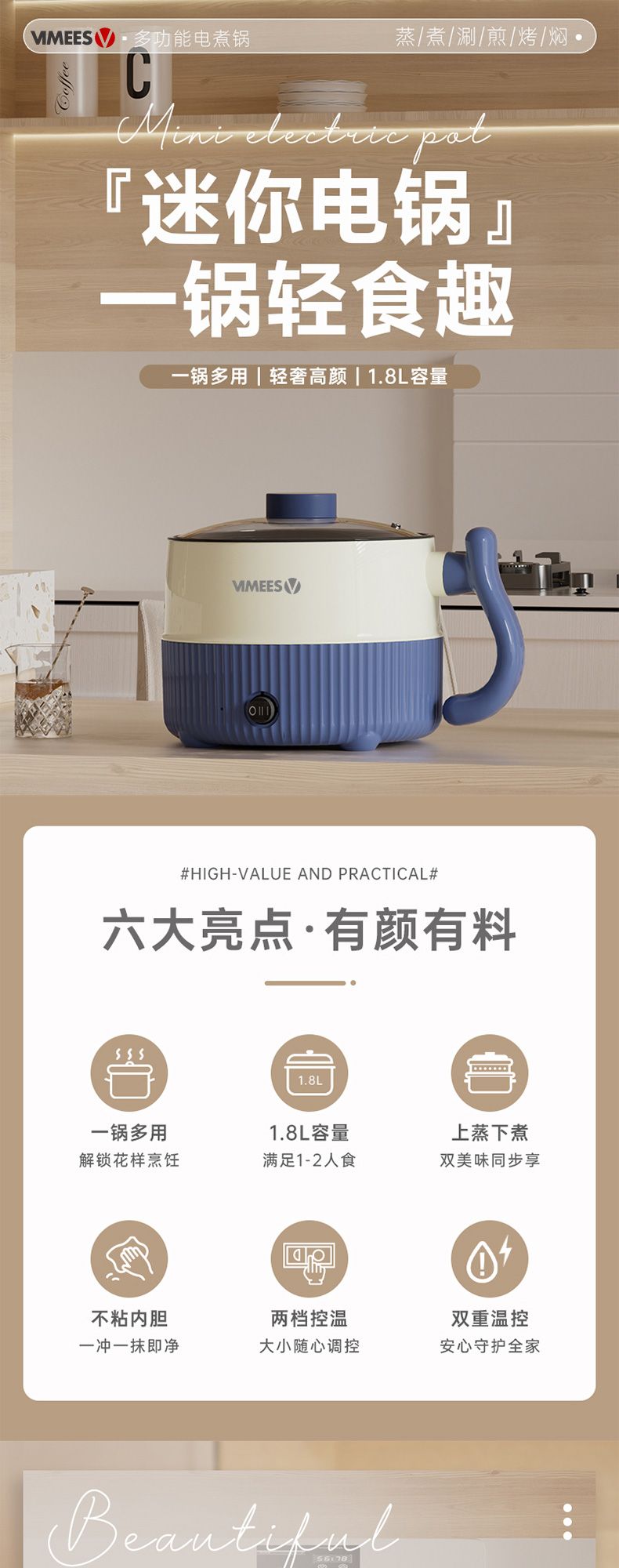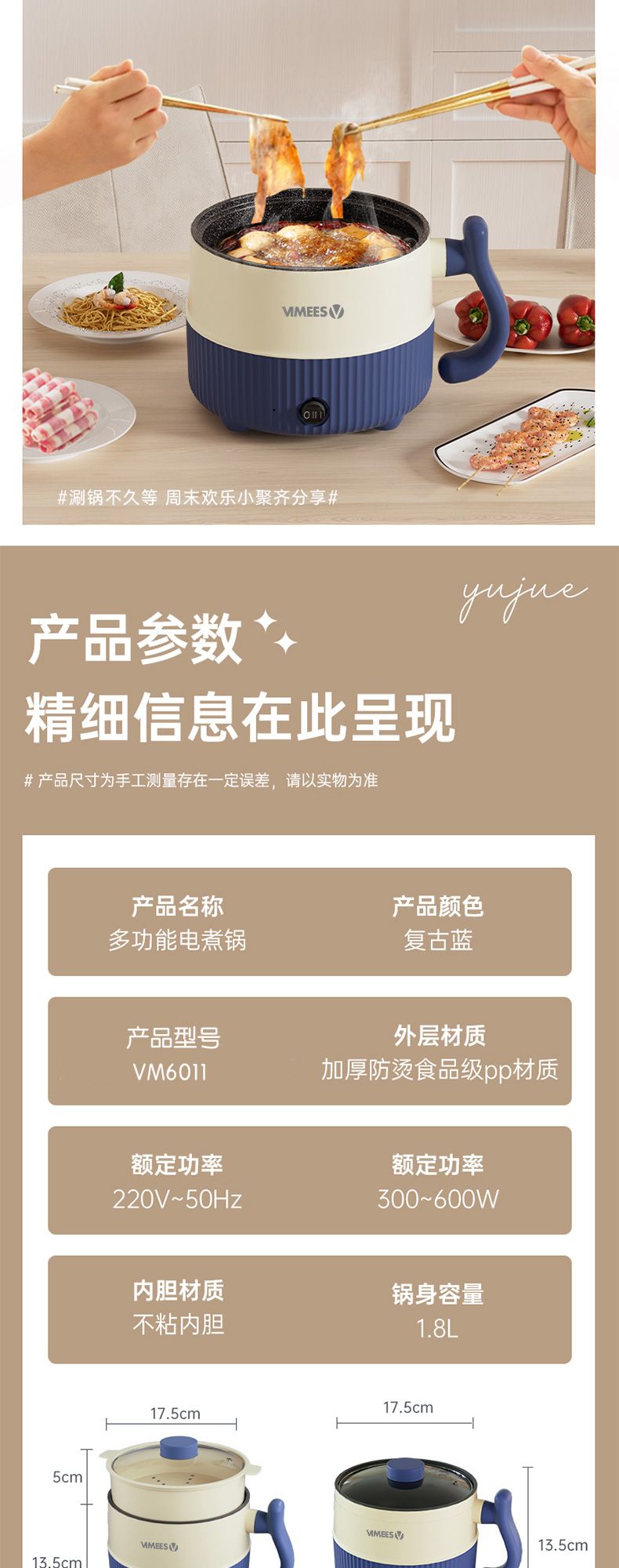 商品名称:维米仕(vimees)多功能电煮锅1.8L 轻奢蓝 VM6011