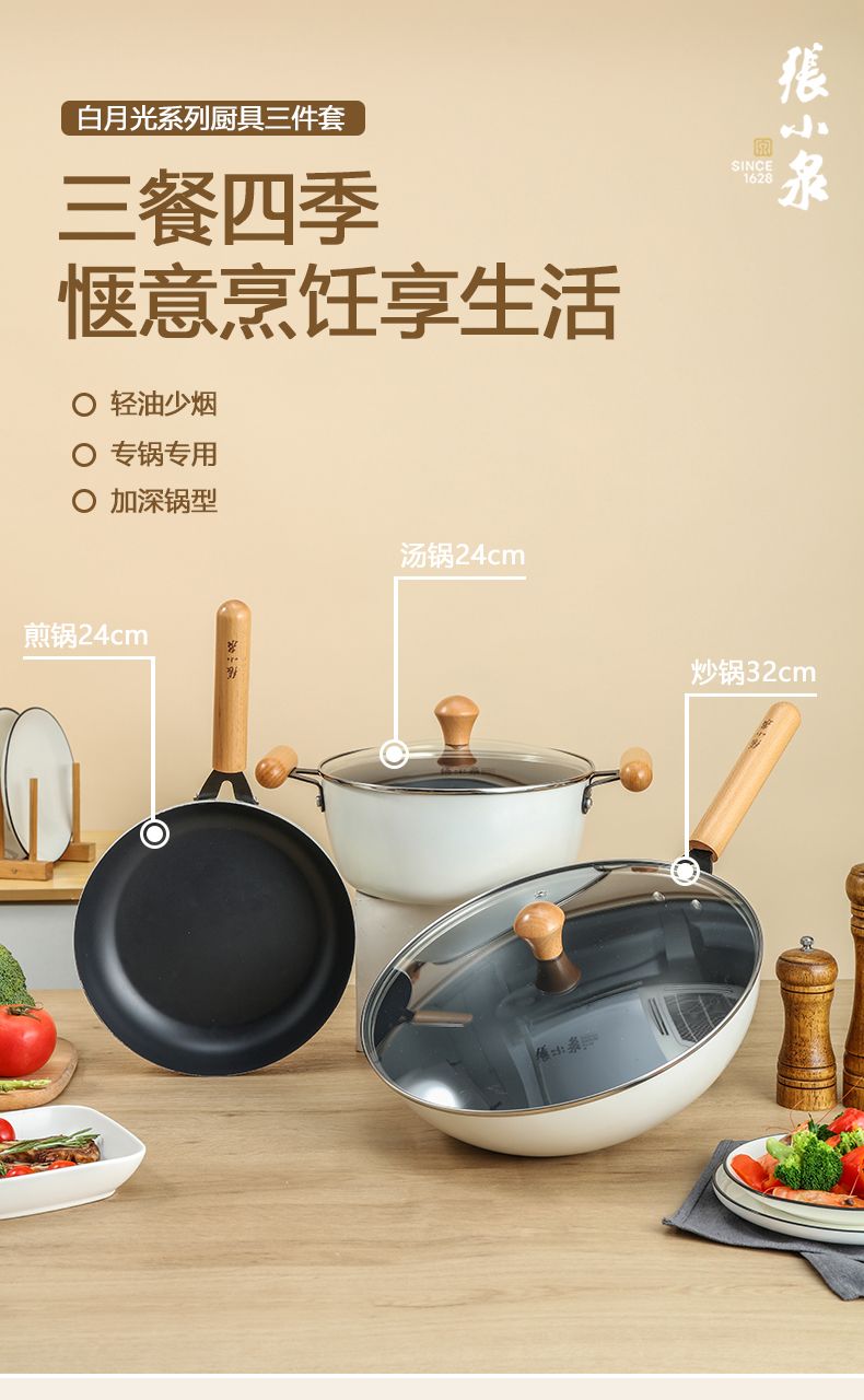 张小泉白月光系列锅具三件套C35603000
