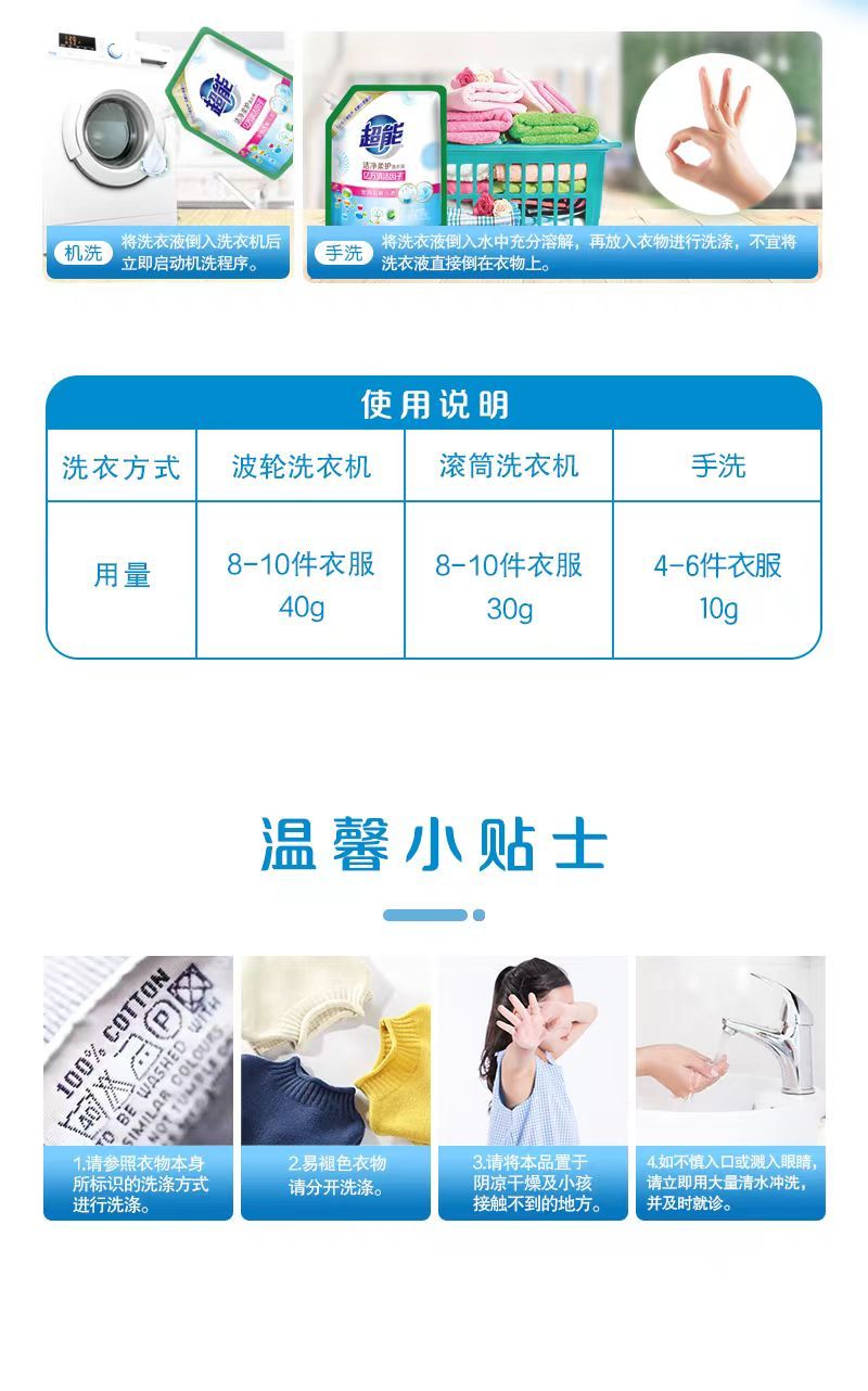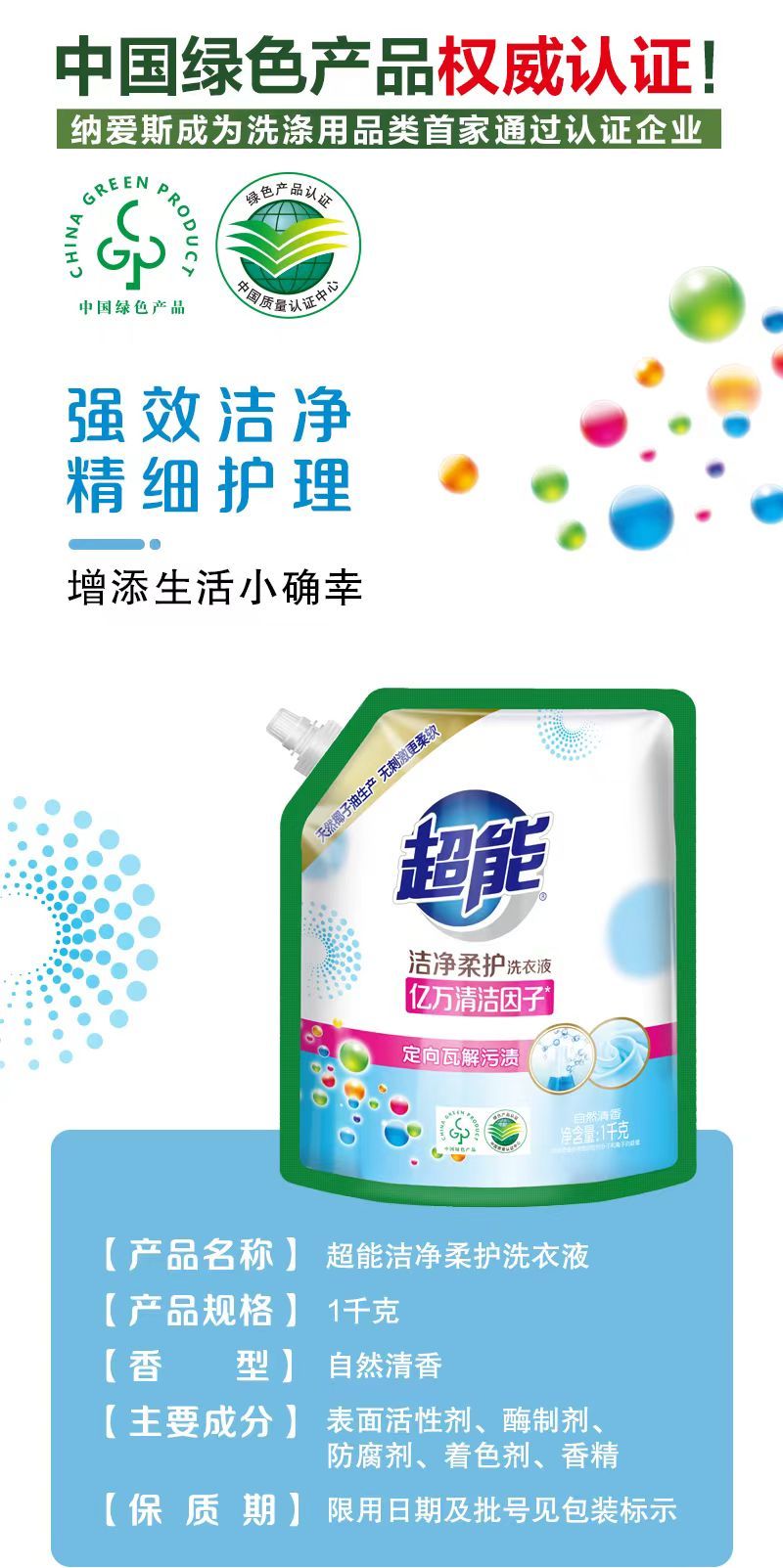 商品名称:超能 植翠洗衣液(鲜艳亮丽)(1kgx2袋)