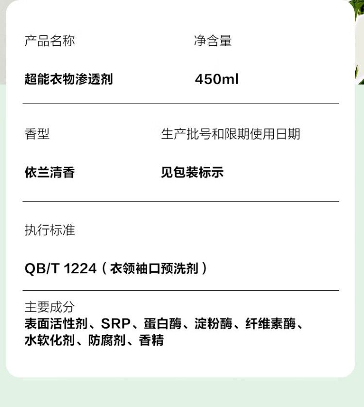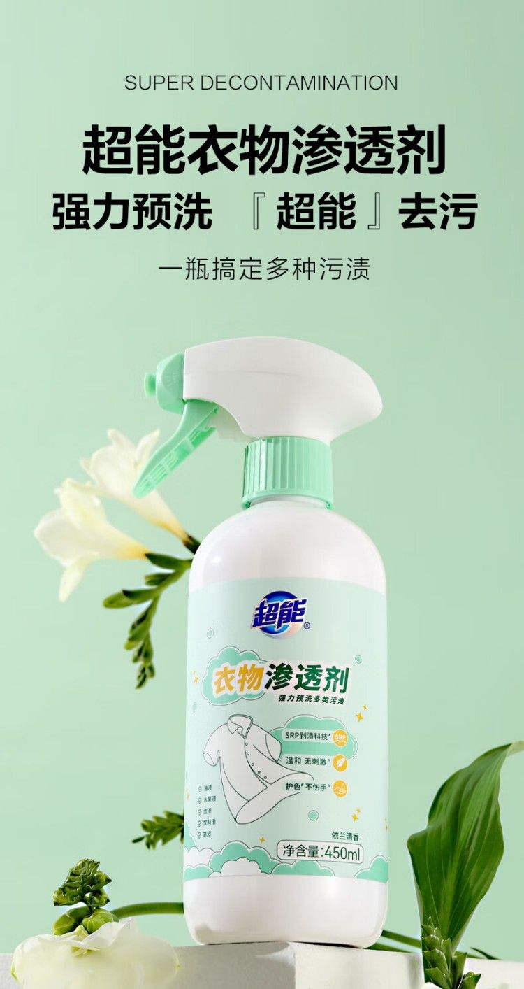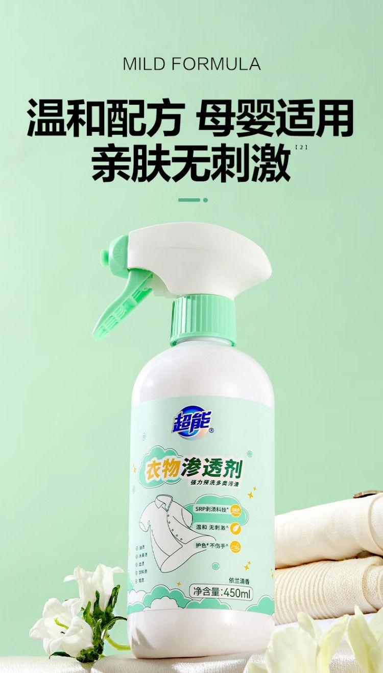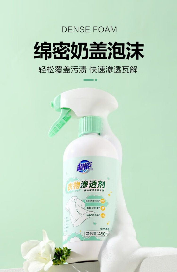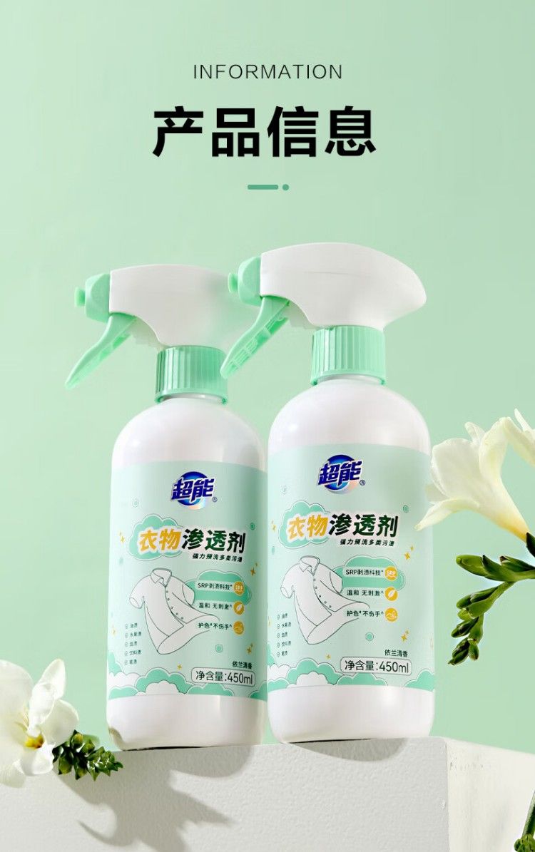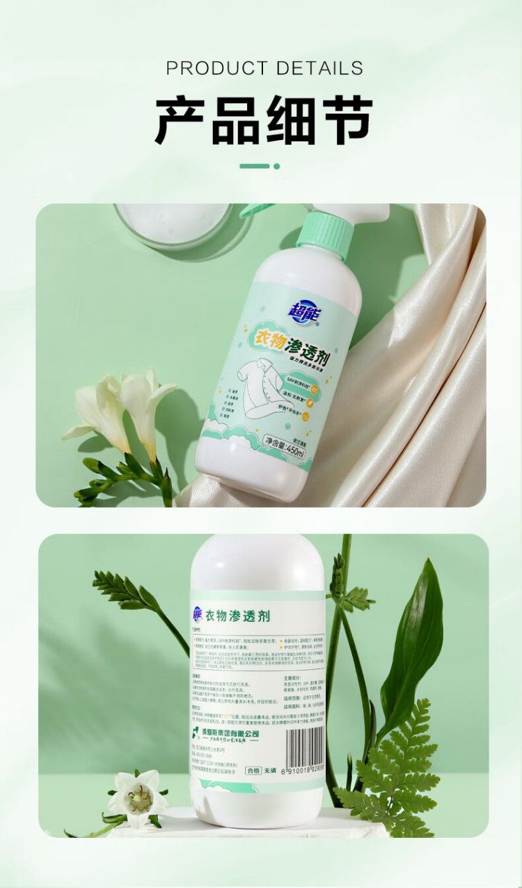 商品名称:超能 衣物渗透剂(两瓶一泵)(NG)(450mlx2)