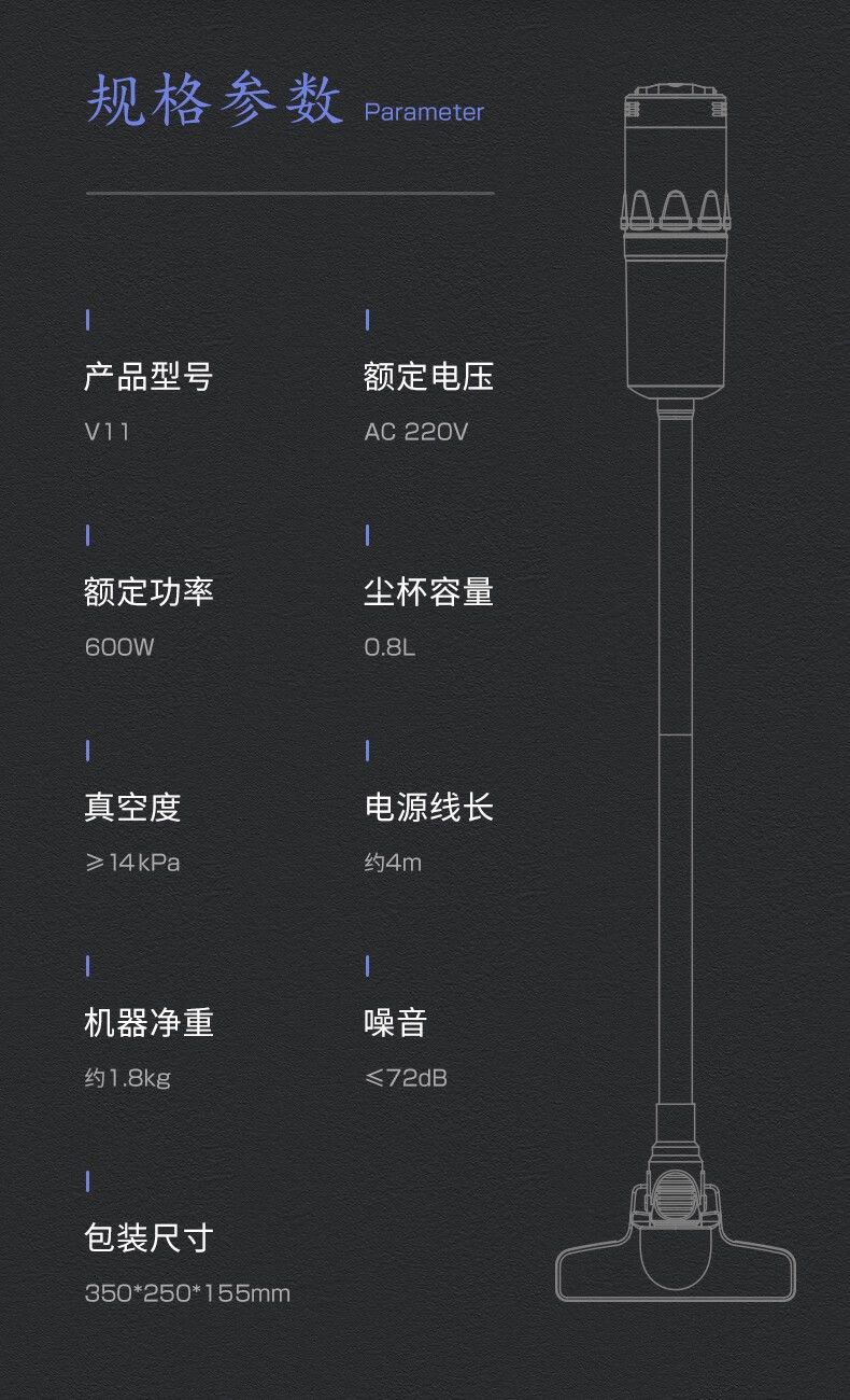 商品名称:普沃达POODA有线真空吸尘器 V11