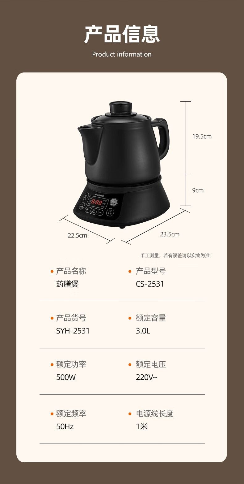 商品名称:山水(SANSUI)3L养生药膳煲SYH-2531