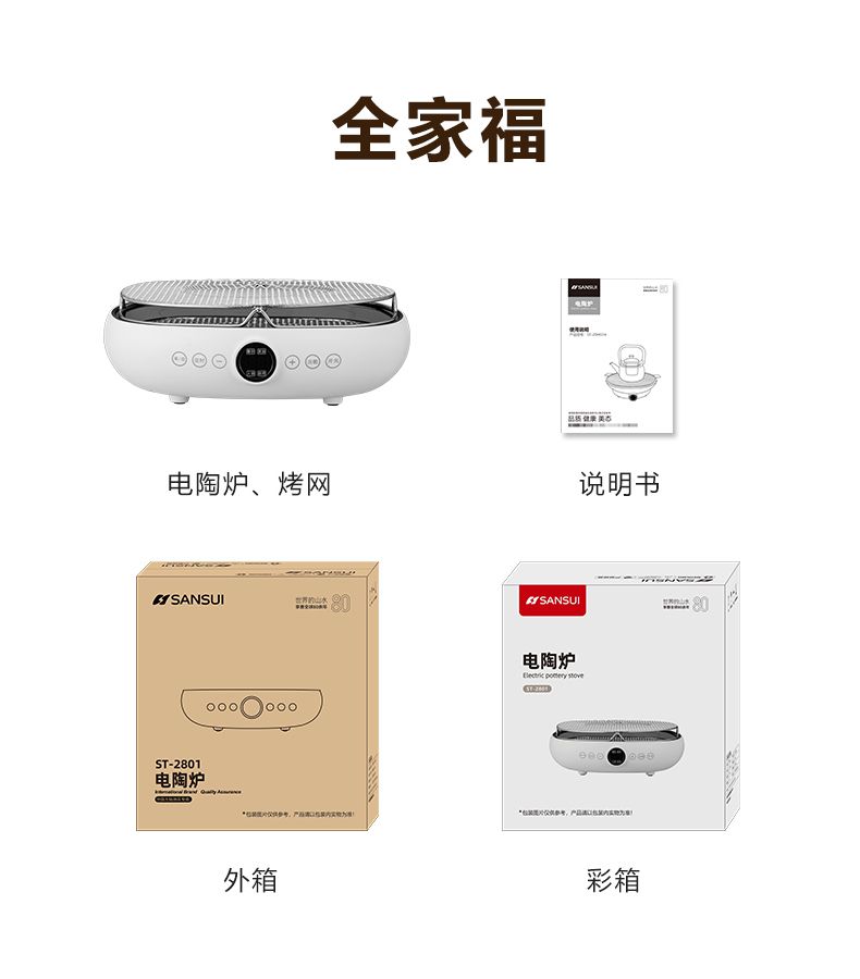 山水(SANSUI)电陶炉 (爆炒围炉带烤网)ST-2801