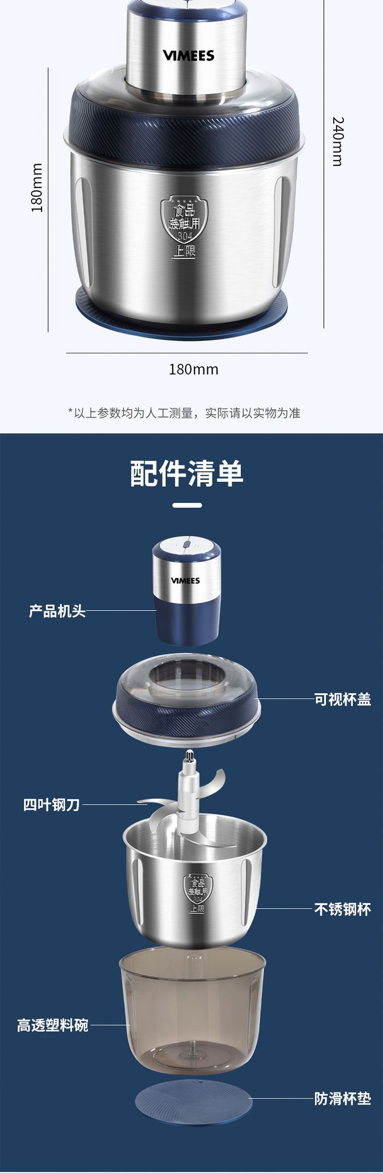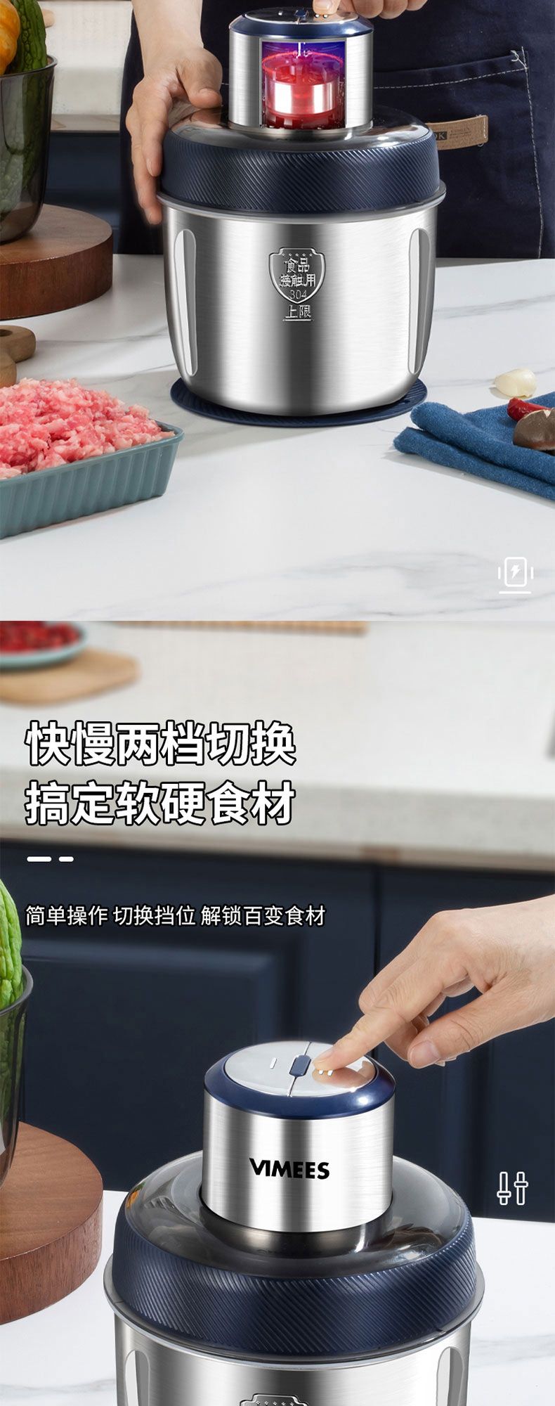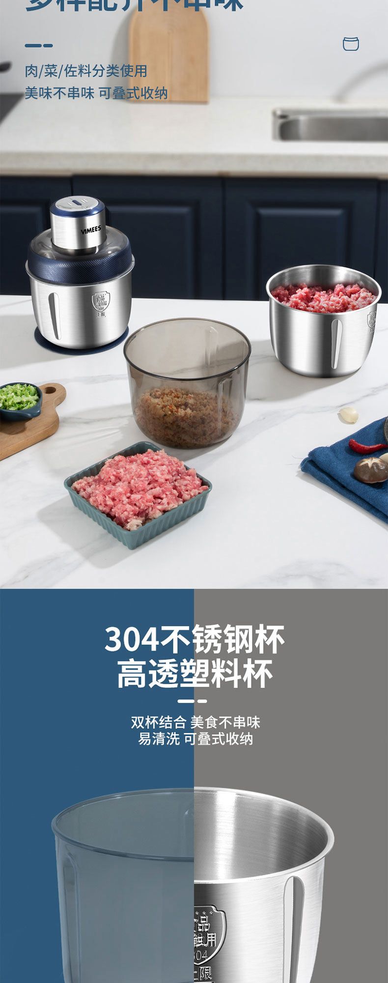 维米仕(vimees)套娃式绞肉机 3L蓝色 双杯 VM8011