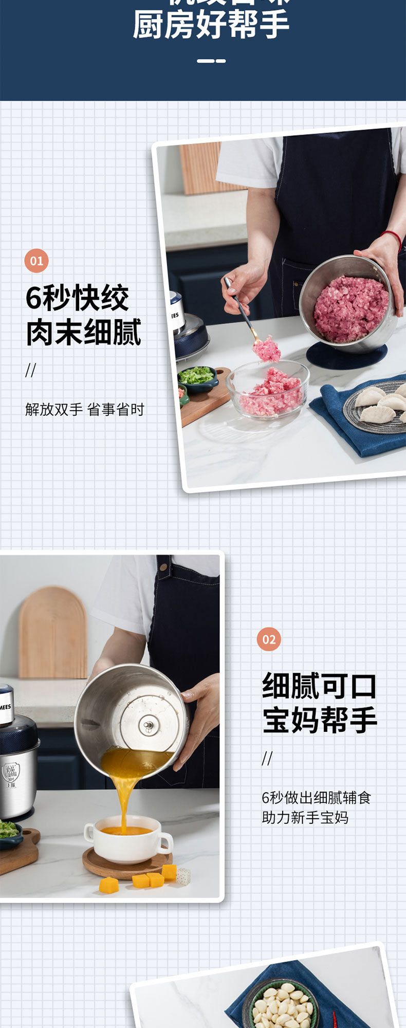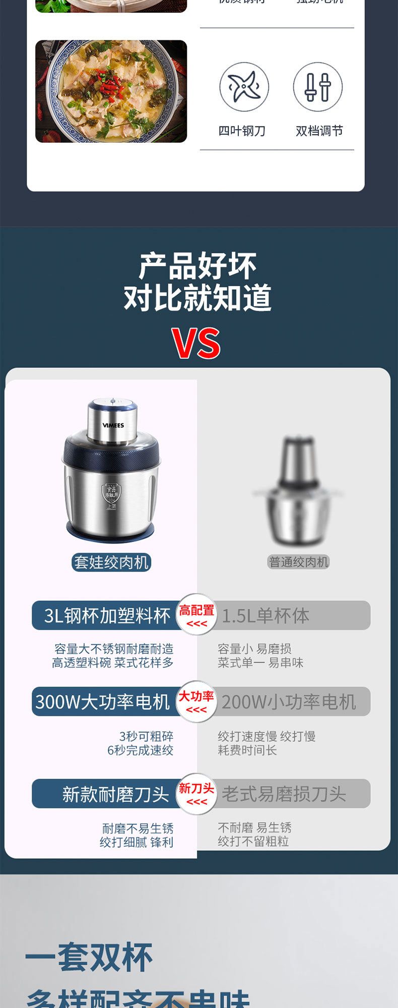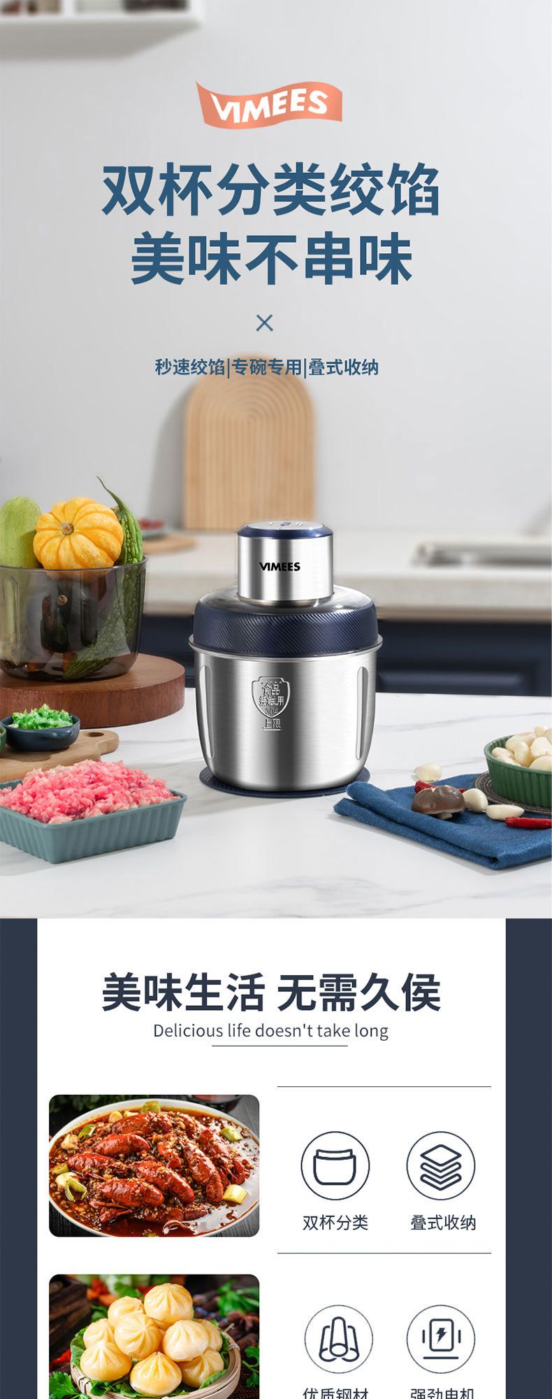维米仕(vimees)套娃式绞肉机 3L蓝色 双杯 VM8011
