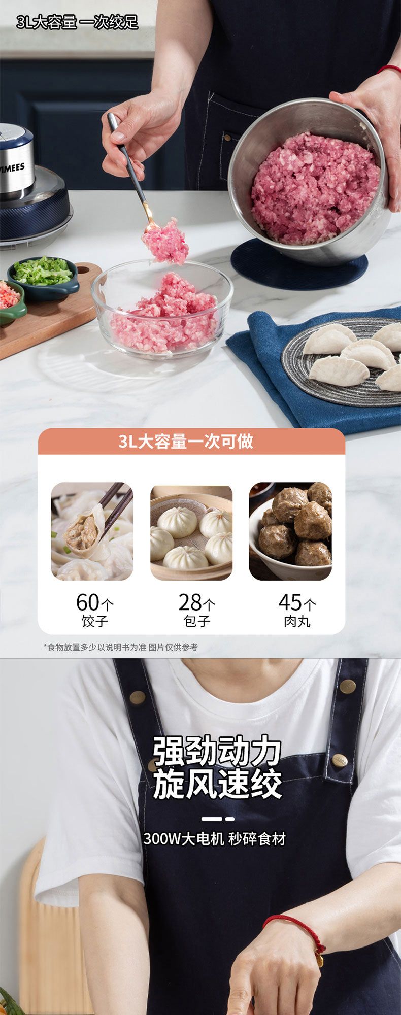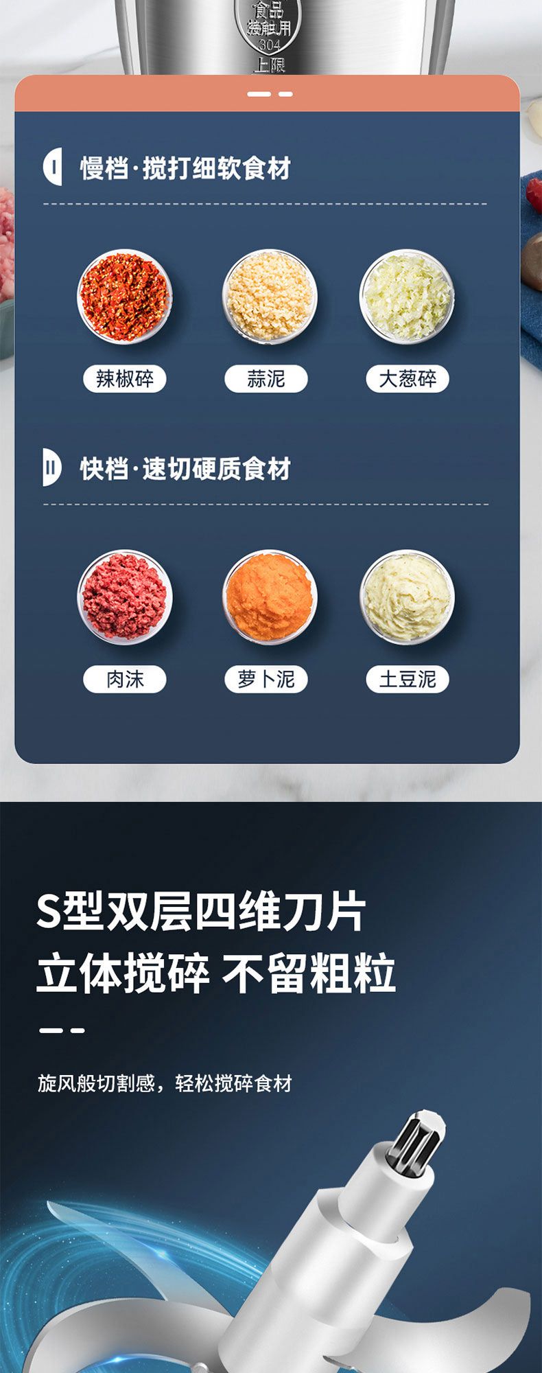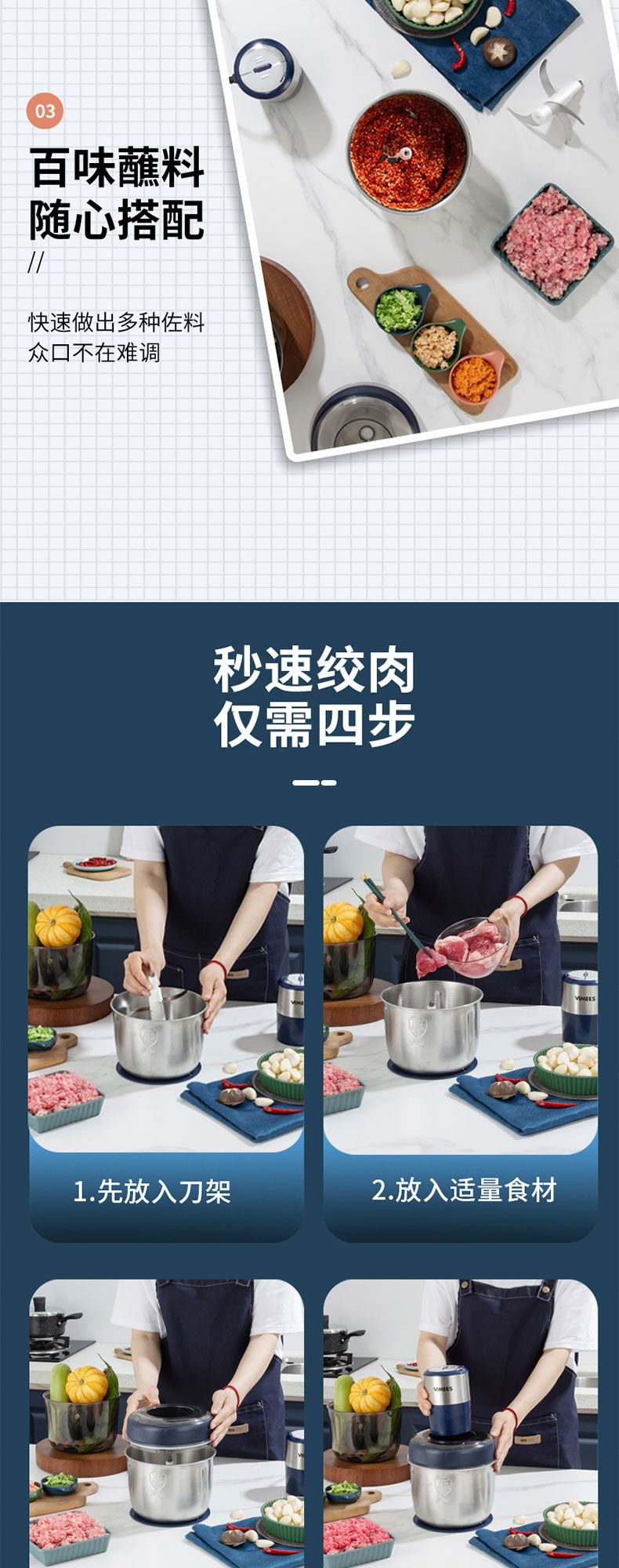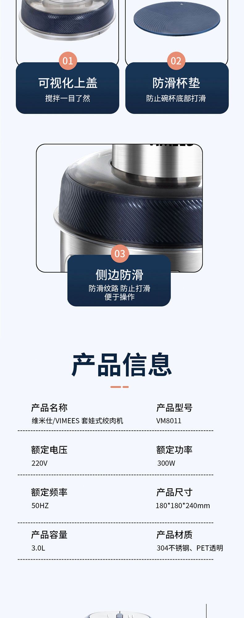 商品名称:维米仕(vimees)套娃式绞肉机 3L蓝色 双杯 VM8011